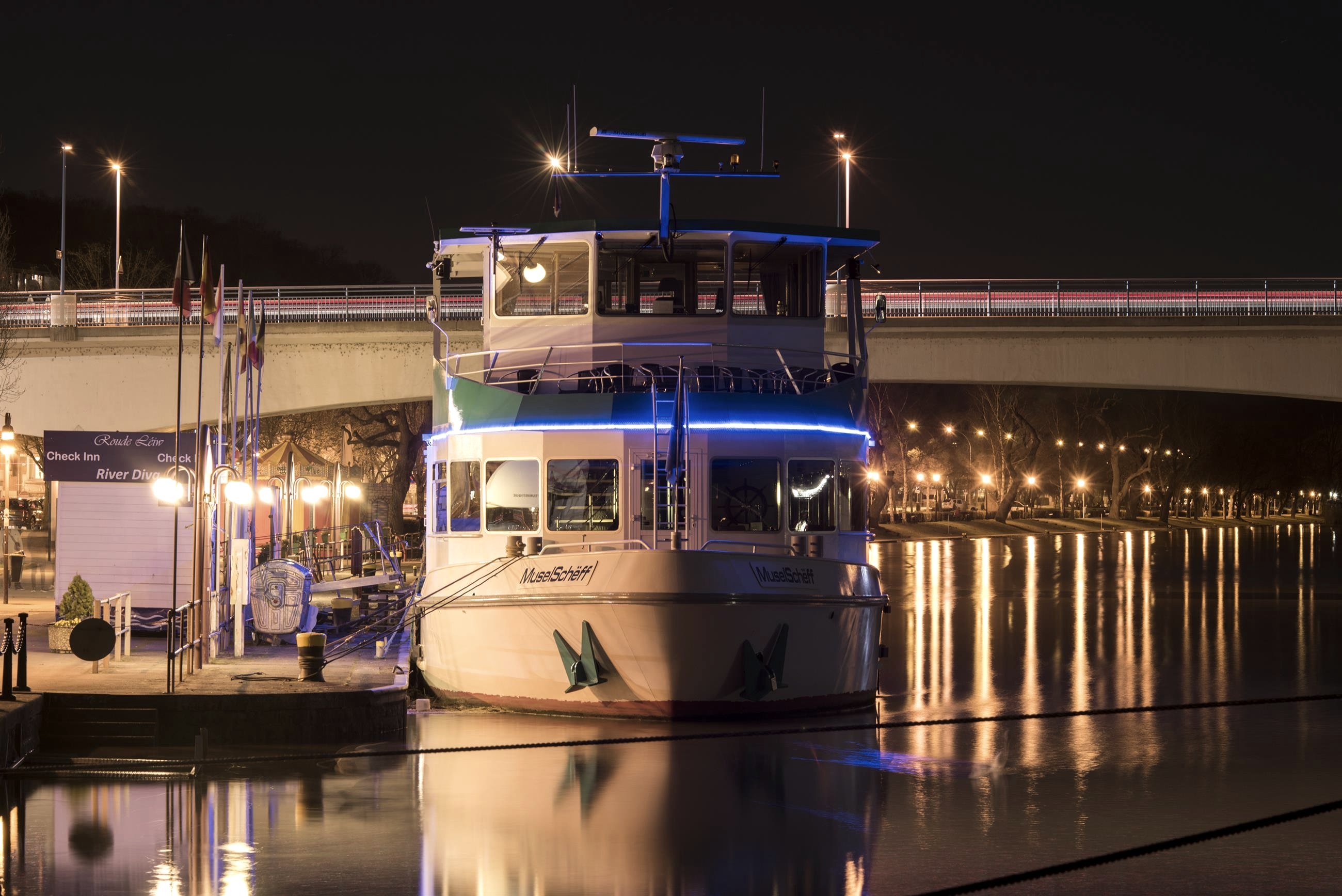 Navitours bietet Ihnen täglich Moselrundfahrten von Remich, der Perle der Mosel, in Richtung Schengen ins Dreiländereck Frankreich-Deutschland-Luxemburg. Bei unseren Panoramafahrten sowie Schleusenfahrten können Sie sich auf dem großen Freideck so richtig entspannen und bei einem Glas Wein und einem Snack die wunderschöne Moselregion genießen. Im klimatisierten und fensterreichen Salon können Sie sich auch „à la carte“ verwöhnen lassen und dabei den Schleusenvorgang hautnah miterleben und die Sehenswürdigkeiten der Weinregion bewundern. Leinen los!
