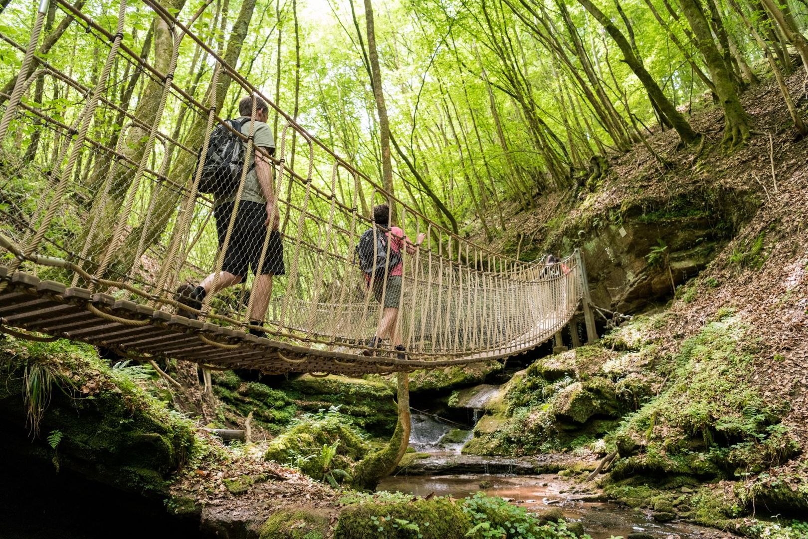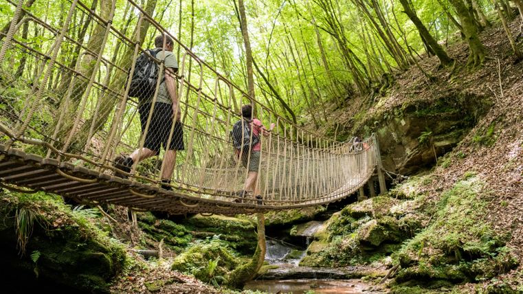 Lass die feurige Vergangenheit hinter dir. Der Zauber des Liesertals erwartet Dich. Beharrlich hat sich der Fluss seinen Weg durchs Gestein gesucht. Folge seinen Windungen. Es plätschert weiter, doch nun ist es die Kyll, die dich begleitet. Es wird felsiger. Der Butzerbach bahnt sich durch das Gestein. Nutze die breiten Steine, über die Du trockenen Fußes ans andere Ufer gelangst. Traue Dich auf die Hängebrücken im Butzerbachtal. Atme den würzigen Duft der Kiefern ein, sie weisen dir den Weg oberhalb der Mosel zu deinem Ziel – der Römerstadt Trier.