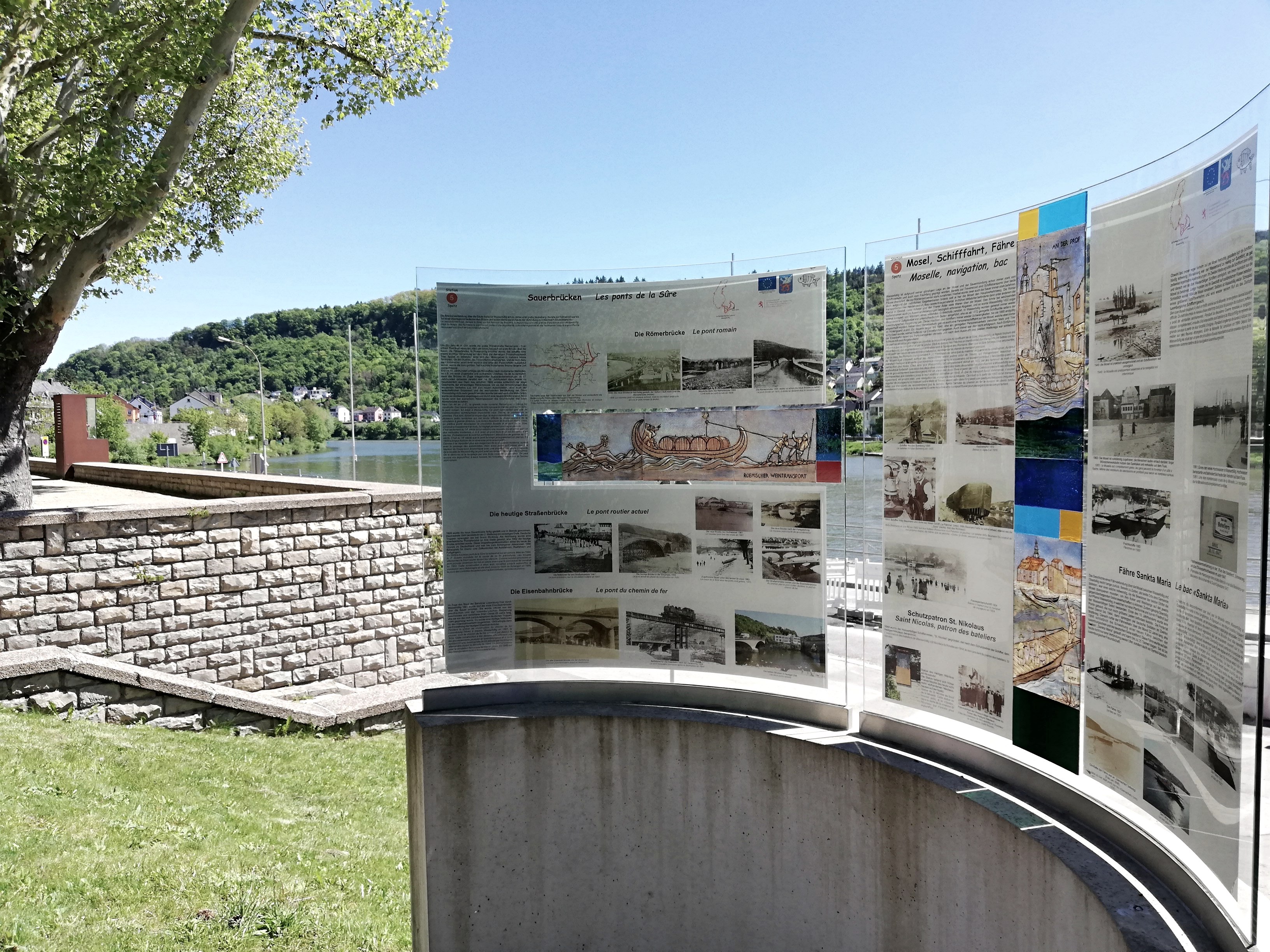 Combining 17 stations with altogether 30 information panels considerately placed, build using glass and stone, visitors learn a lot about culture, history and nature in Wasserbillig.