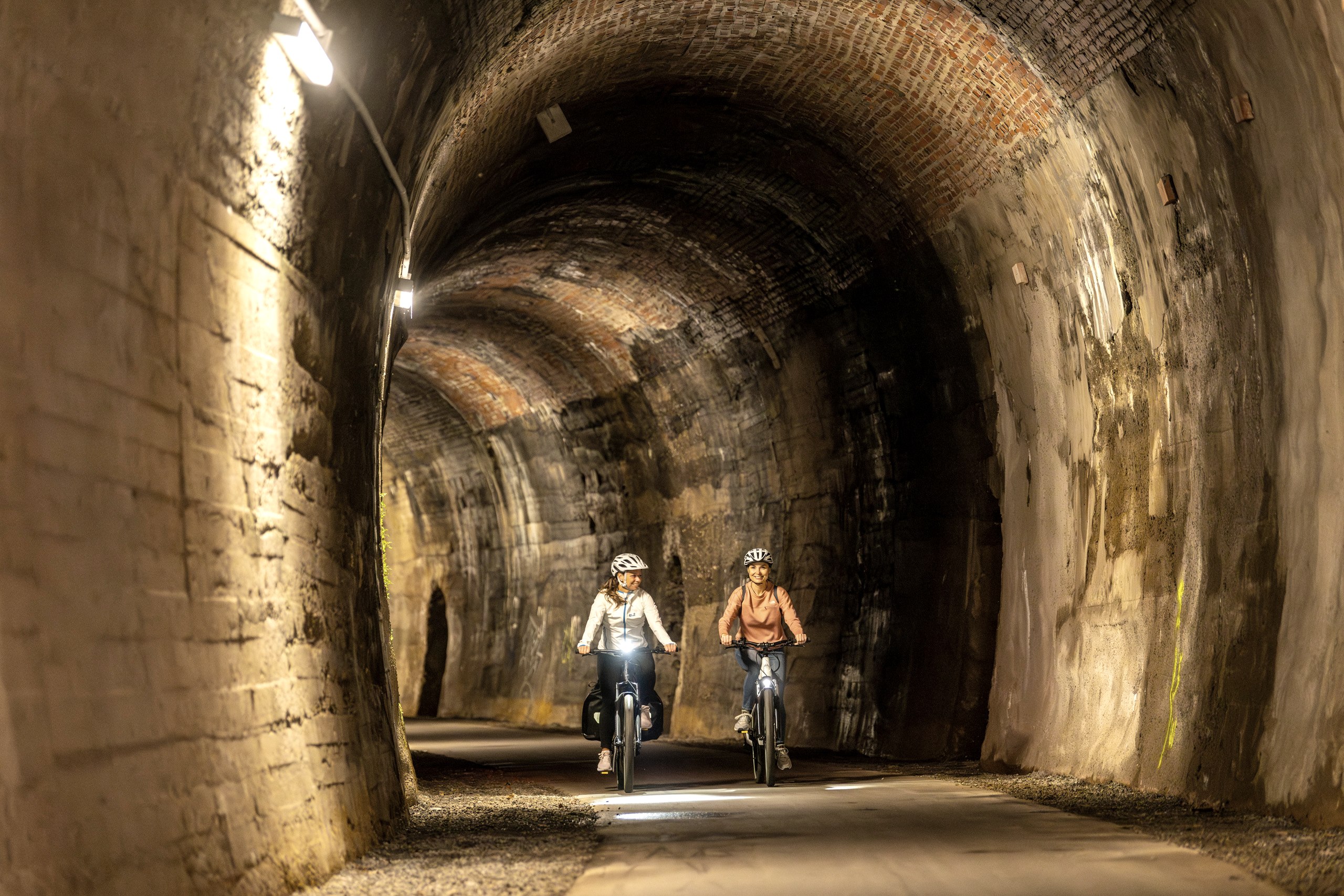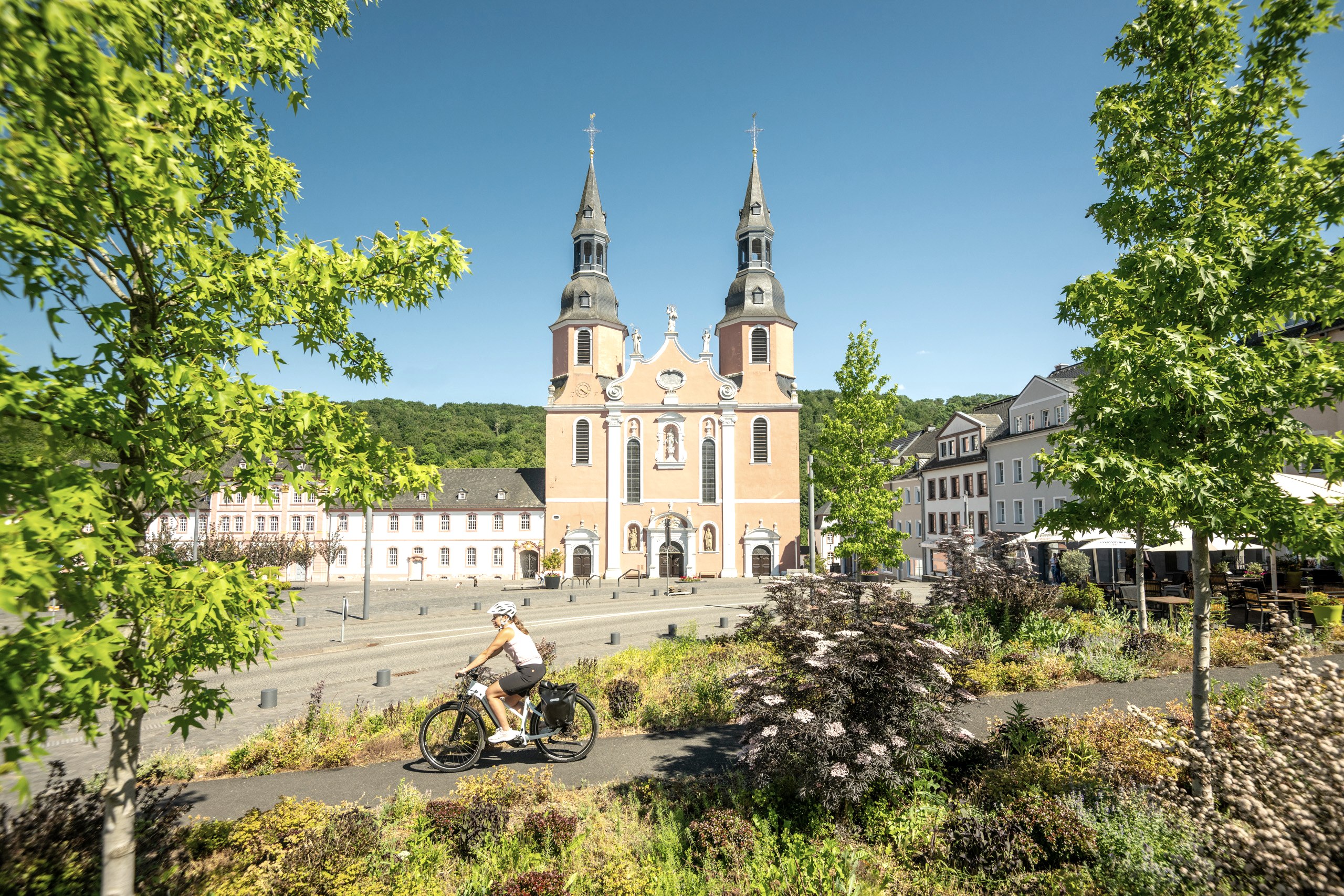 The Eifel-Ardennes Cycle Route moves freely across the Belgian and German borders, starting in the cultural town of Prüm and continuing through the Prüm Valley as far as Pronsfeld. Before you begin your journey, it is worth spending some time in the quaint little town of Prüm, with its St Salvator basilica, the town’s landmark. Keep your eyes open as you set off along the cycle route towards Bleialf. In the Alfbach Valley, the attentive cyclist will experience a very unusual spectacle – with a bit of luck, you might be able to spot a beaver building a dam on the edge of the path. Later on, in the village of Bleialf, don’t miss the impressive entrance of the disused lead mine known as ‘New Hope’, which is now a visitor’s attraction. From here, the path goes down a 400 metre long tunnel and through picturesque valleys to the River Our, which also forms the border with Belgium. The path then continues to St. Vith in Belgium, a town with plenty of opportunities to relax in a pleasant atmosphere. If you really want to relax and switch off, you should plan in an overnight stop here before continuing on your way back to Prüm.