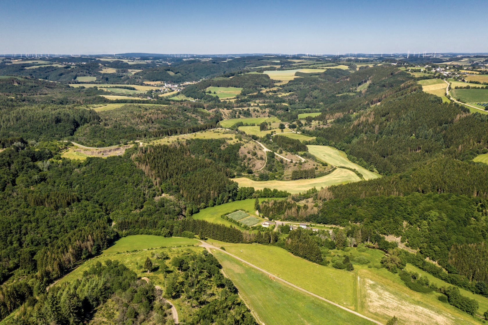 So stay on the left side of the stream and follow the winding course of the Irsen, your lively rippling companion, to the small village of Falkenauel. At the Karlshausen mill you cross the Irsen, steadily gain altitude on a winding forest path and enjoy a magnificent view of the Ardennes on the Hüberg. After a rest, you continue on winding paths in the direction of Daleiden. After passing a large cemetery of honor, the route turns downhill to reach the Irsen Valley recreation area again and conclude the circular route.