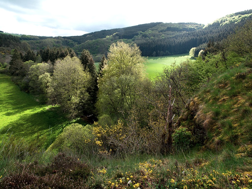 This special heath landscape on both sides of the river Irsen is under nature protection. It is the habitat of an extremely large number of insect species, some of which are very rare. For example, 544 species of large butterflies, especially moths, have been recorded! Where there are many insects, many birds nest, buzzards, mice, foxes and hedgehogs are at home. In short: The Irsen valley is a functioning natural paradise and the Eifelgold route leads you gently on farm and forest paths right through this "valley of 1000 butterflies".