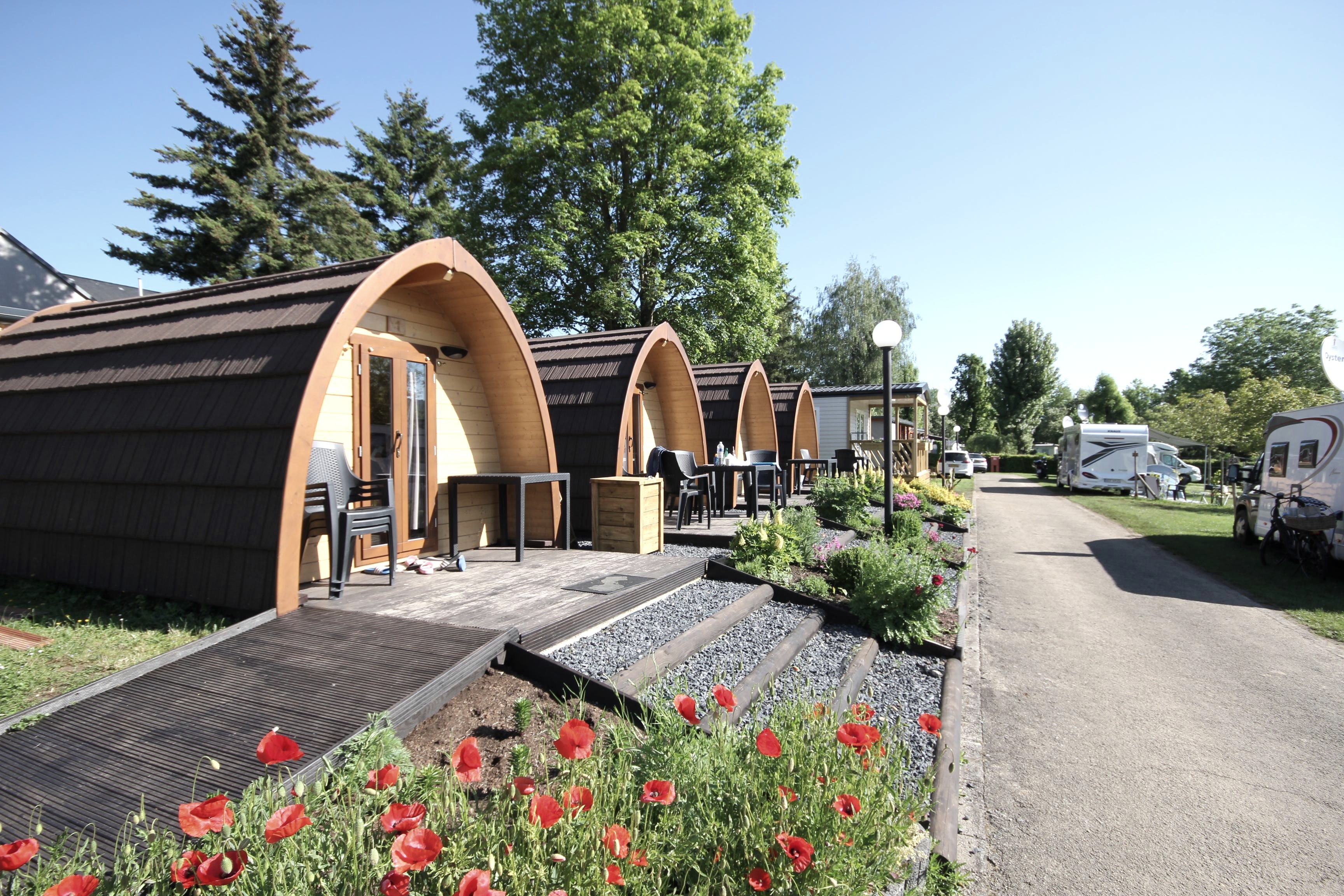 Our campsite "Route du Vin" is located directly on the banks of the Moselle, harmoniously embedded between the public outdoor swimming pool, tennis courts and the "Maacher Kulturhuef". There are children's playgrounds, boules game, games room, bike and Ebike rental. Furthermore, free hot showers, renovated and heated sanitary facilities, washing machines and tumble dryer, free Wifi, bistro with snacks and bread service. The campsite is characterized by its excellent location in the immediate vicinity of the hiking trails, biking trails and shops. It is possible to rent one of 4 new Family PODS.