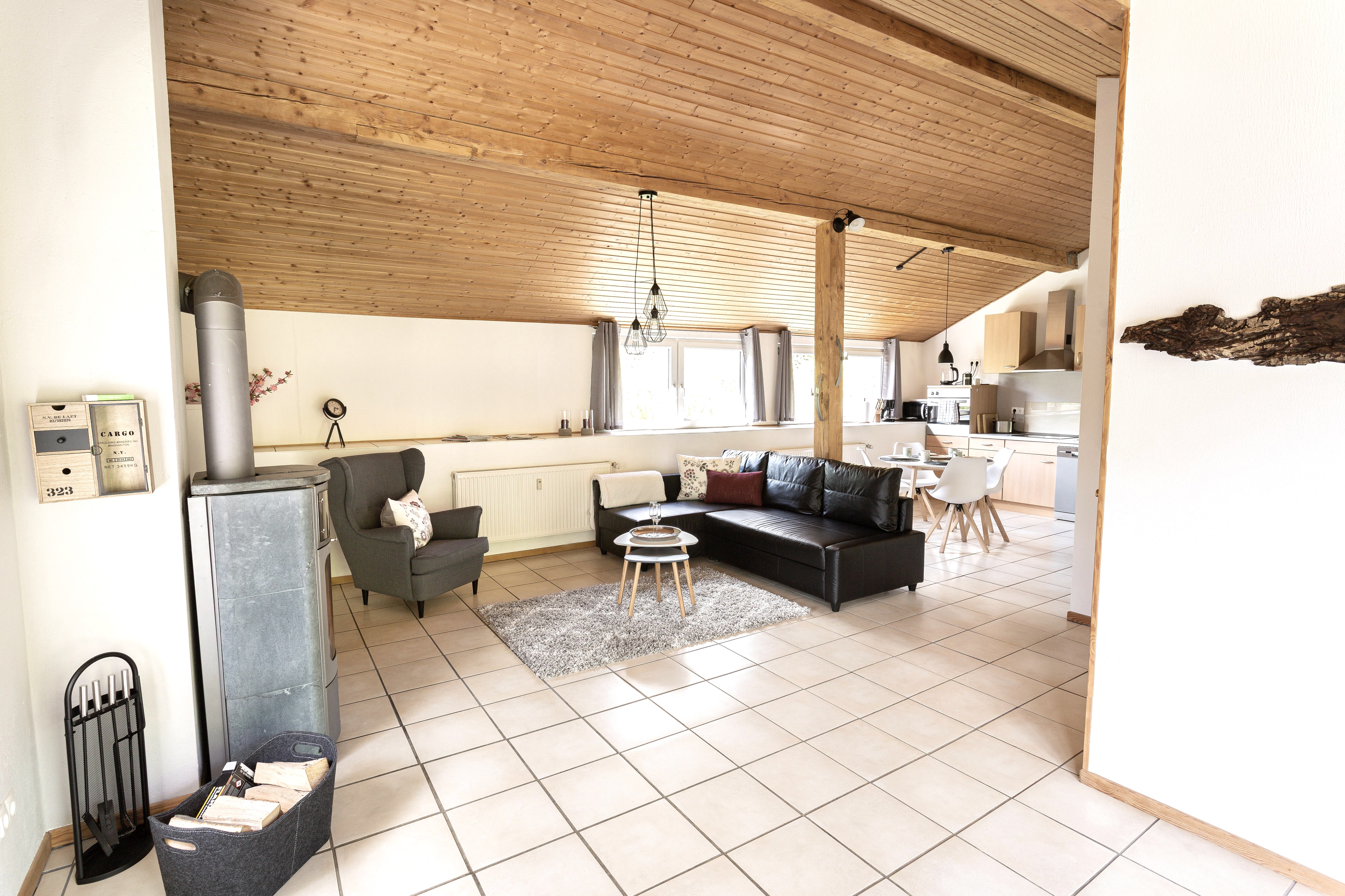 The cozy holiday apartment I "Am Mühlenbach" offers a living space of approximately 104 m² and accommodations for up to 6 people.