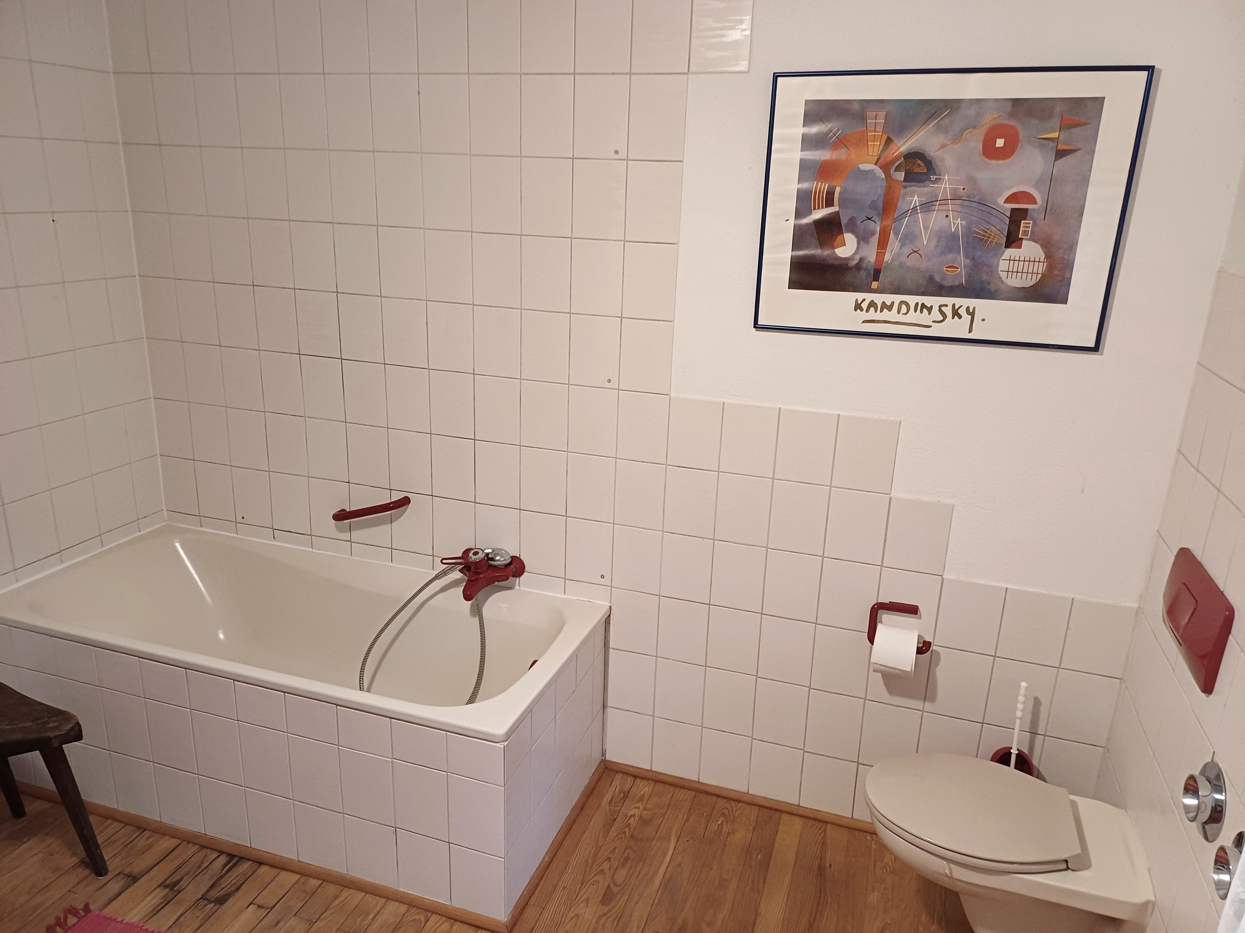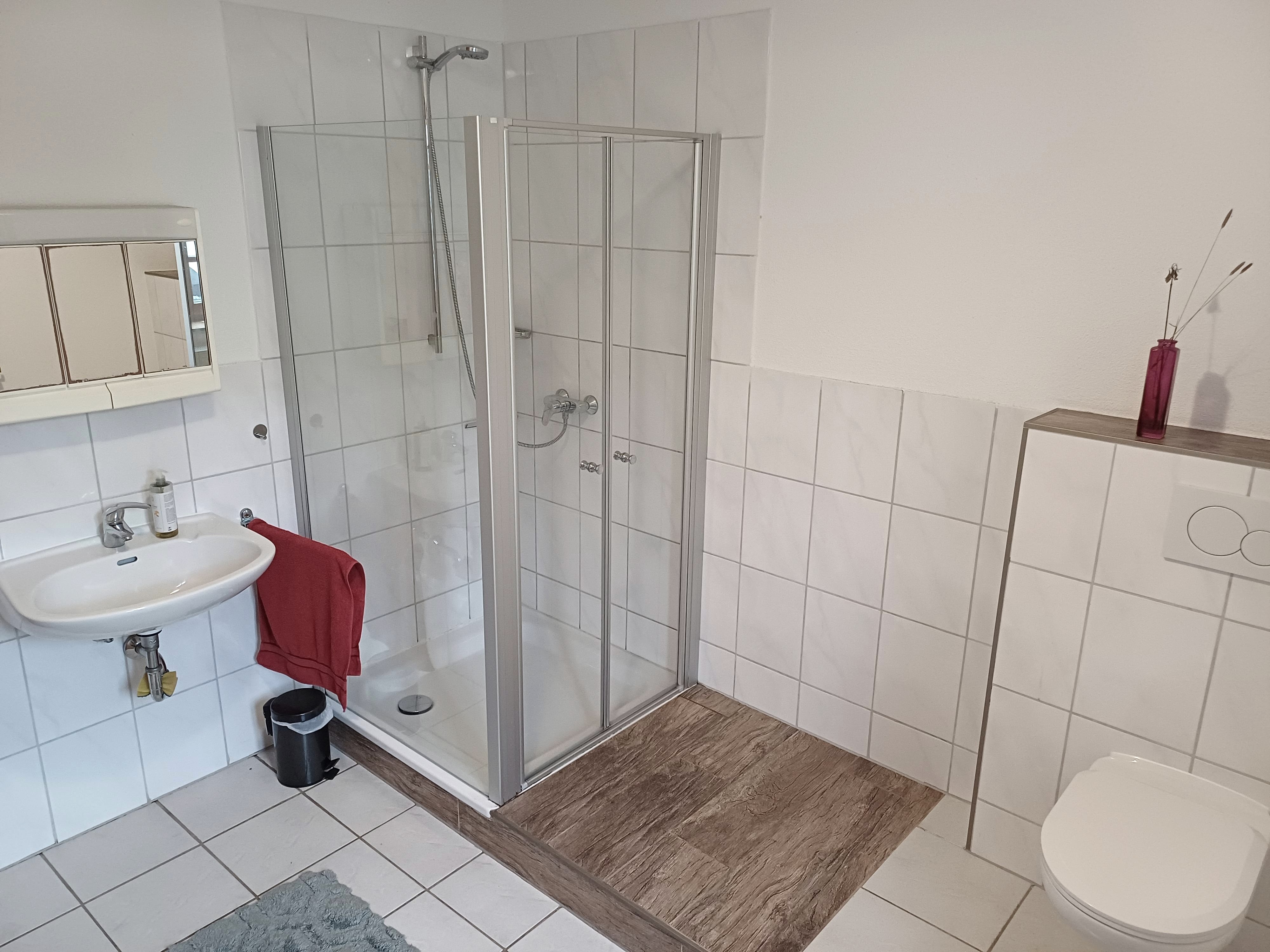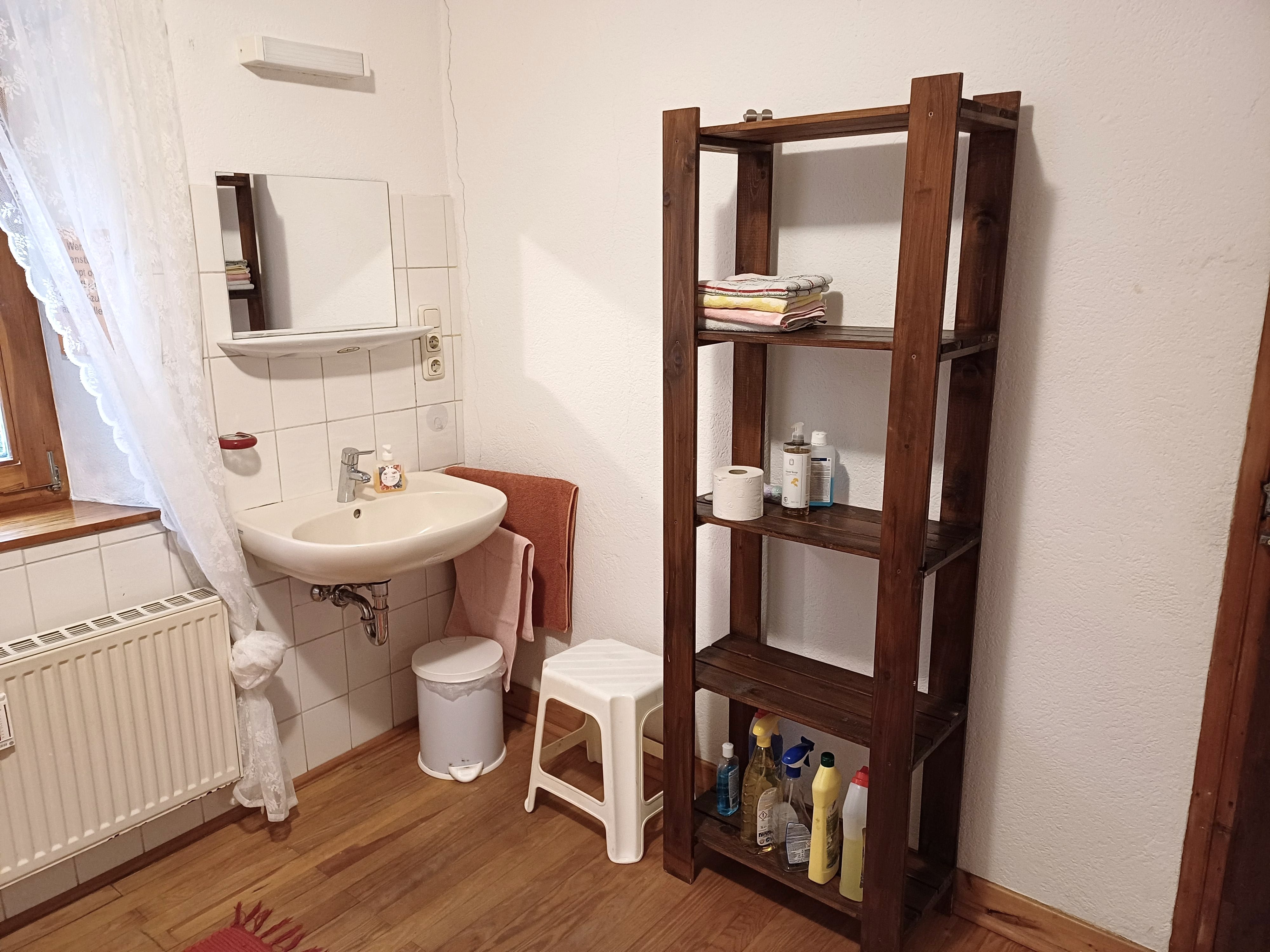 A bathroom with toilet and shower is located on the ground floor. Another bathroom with bathtub and toilet is on the 1st floor of the house.
