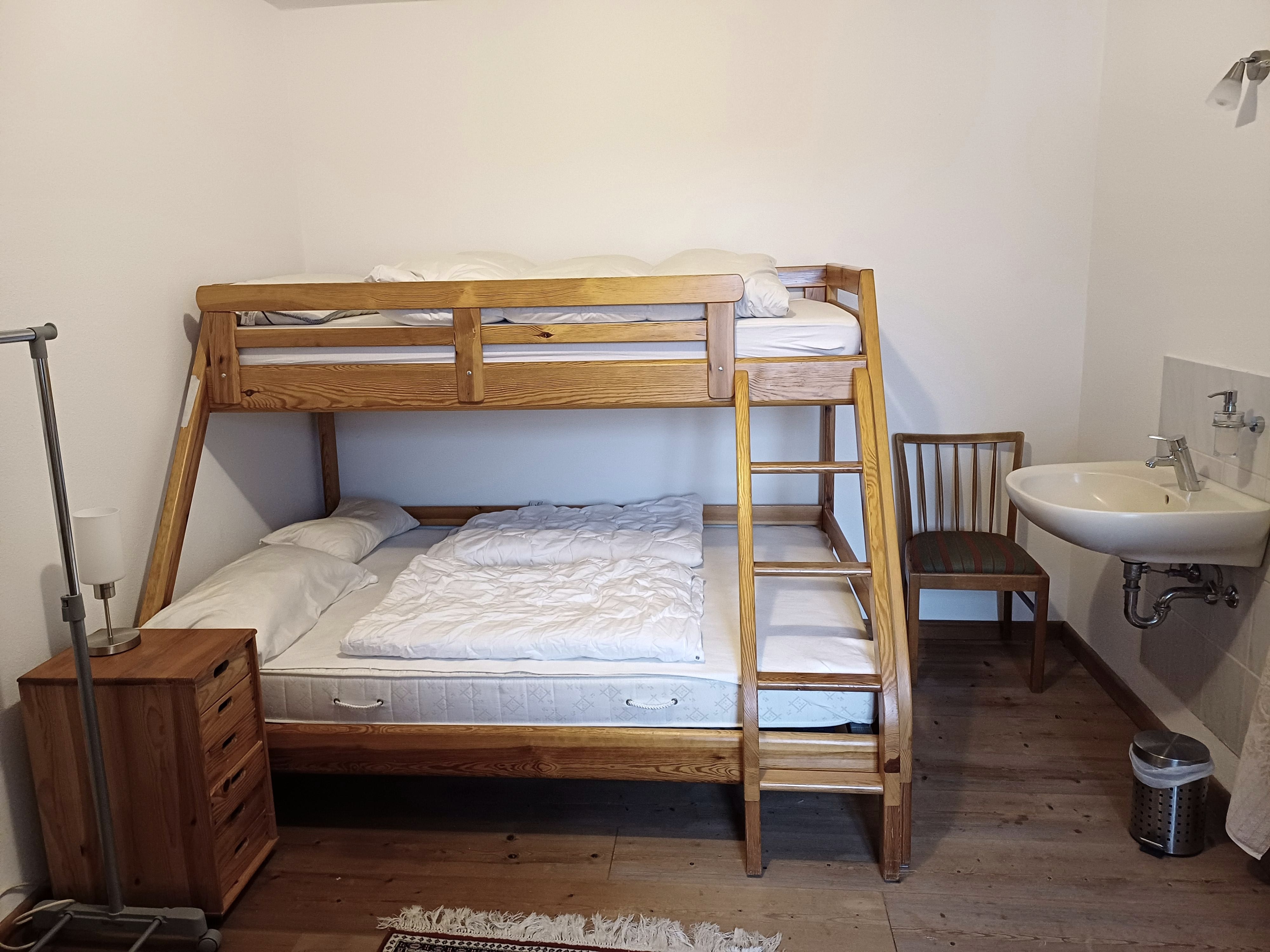 There are four bedrooms on the 1st floor of the house, providing a total of ten sleeping places and a crib: