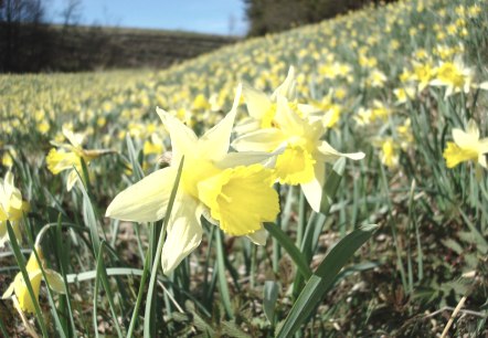Wild narcissi in the Eifel turn fields into yellow carpets of flowers.