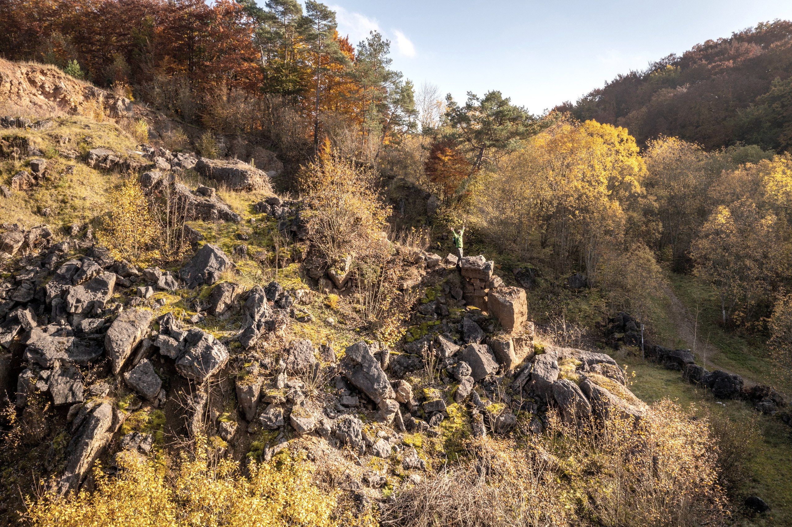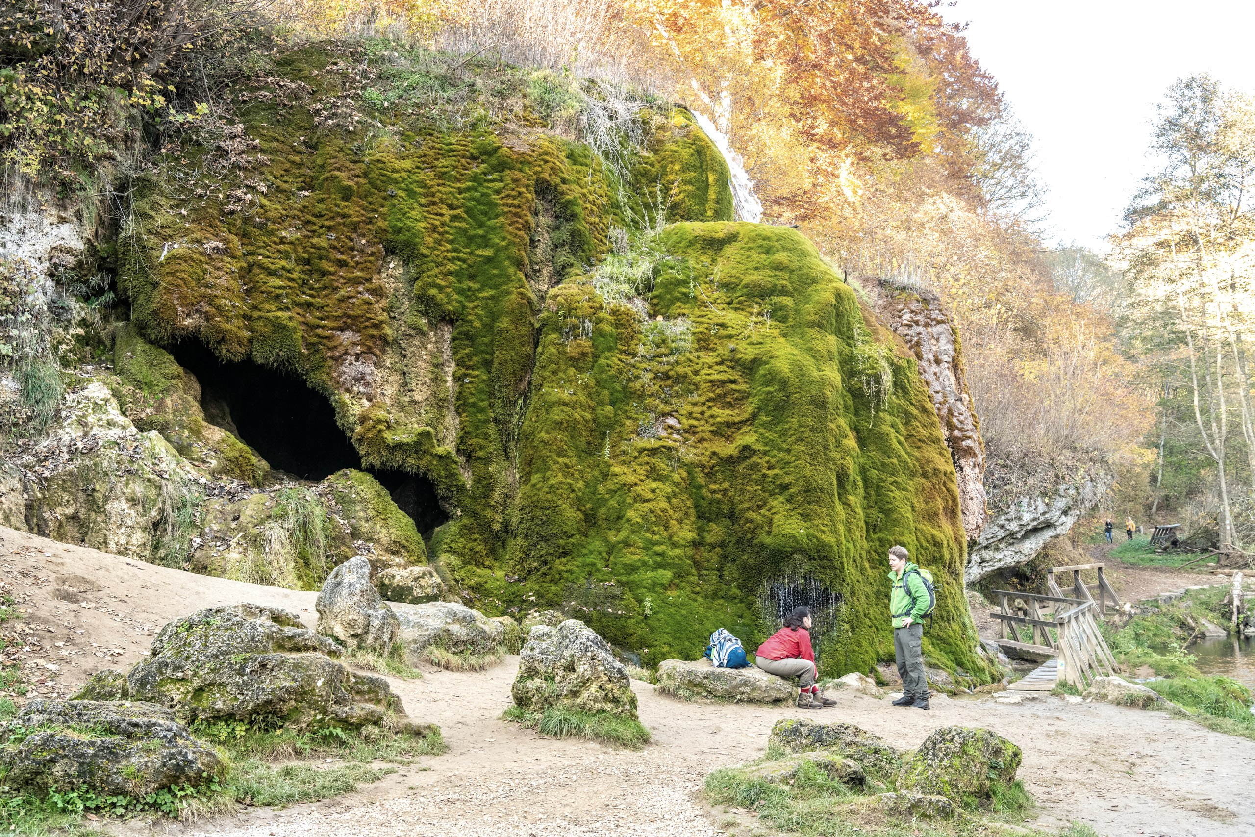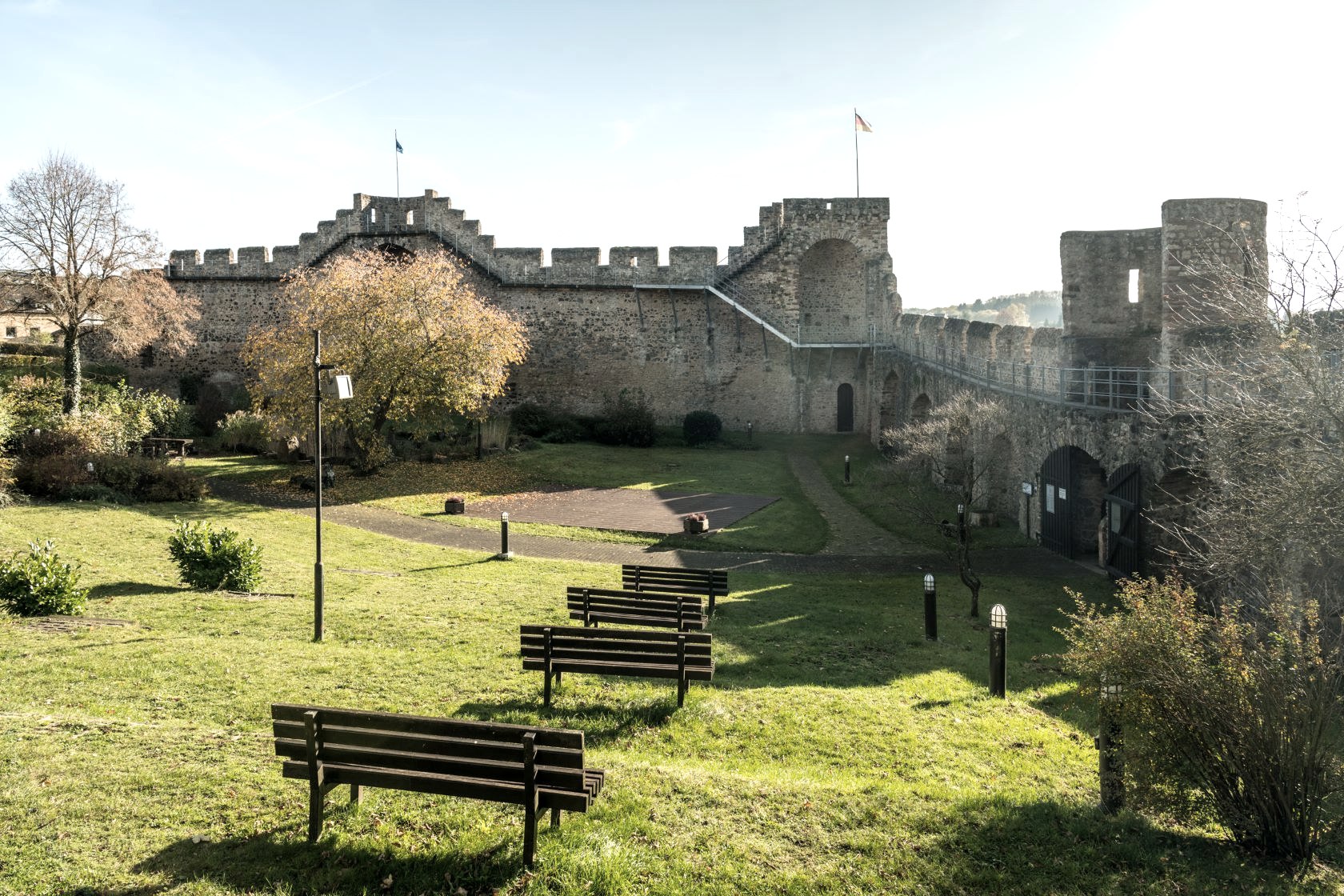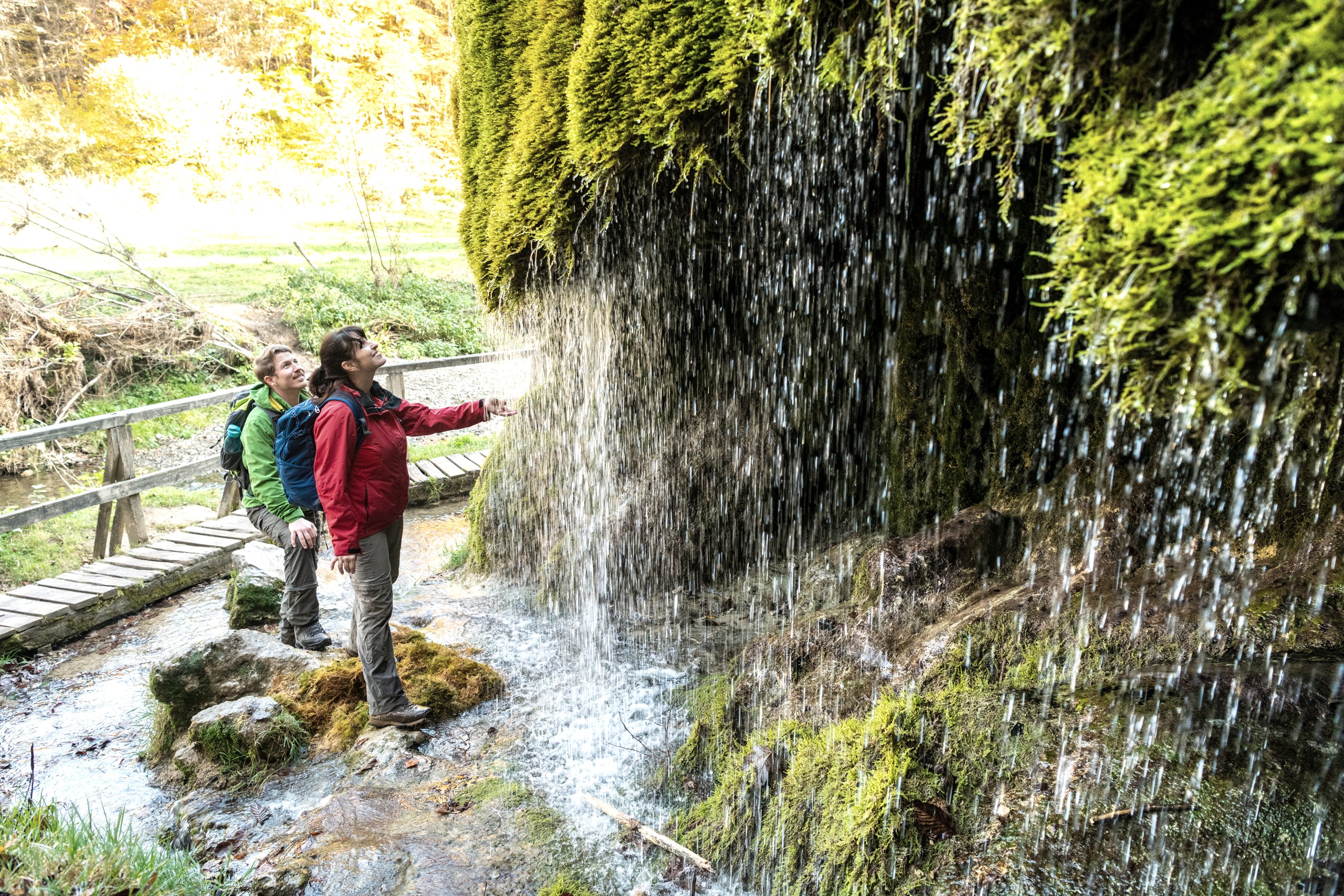 La moitié de ton circuit de randonnée est marquée par un monument naturel particulier : la chute d'eau de Dreimühlen près de Nohn. La nature a pris son temps pour créer cette chute d'eau et continue de le faire. Jour après jour, le calcaire se dépose ici et la structure miraculeuse grandit avec persévérance - environ 10 centimètres par an vers l'avant de la vallée. Tu fais comme la nature et tu prends ici aussi un peu de temps : tu fermes les yeux et tu écoutes la mélodie de l'eau persistante, tu sens la mousse douce et tu te rafraîchis avec un bain de pieds dans l'eau scintillante. Après cette pause détente pittoresque, le sentier de l'Eifel continue en passant devant le monastère de Niederehe et le château fort de Kerpen, qui trône fièrement au-dessus du village (propriété privée, peut être visité de l'extérieur).