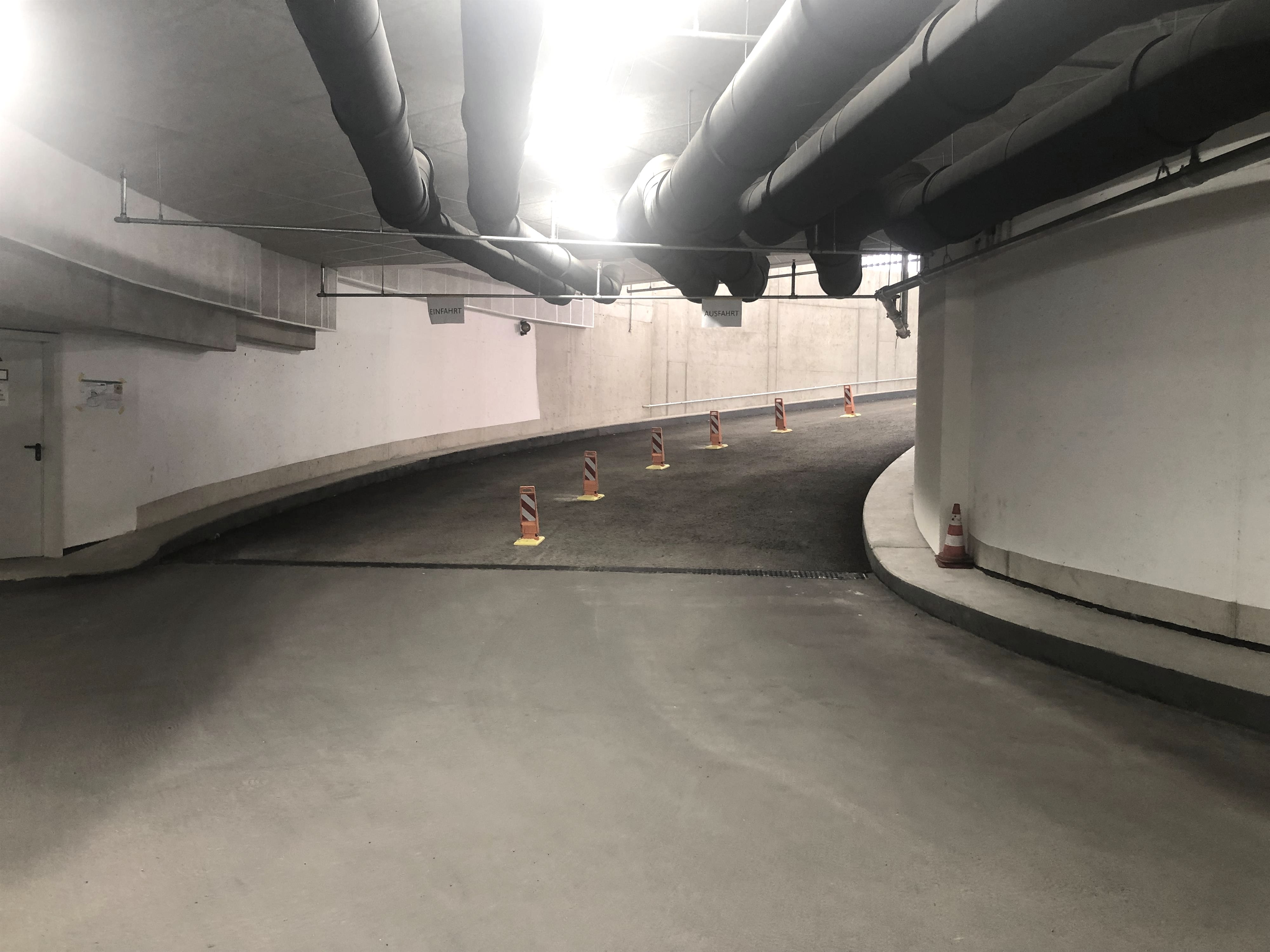 Répartis sur deux étages, 60 places sont à disposition des visiteurs dont 4 places PMR. Les places de parking publiques sont très facilement reconnaissables grâce à l'éclairage au-dessus de la place de parking (vert pour libre, rouge pour occupé et bleu pour les places de parking pour personnes à mobilité réduite). Les toilettes sont accessibles entre 08h00 et 20h00.
