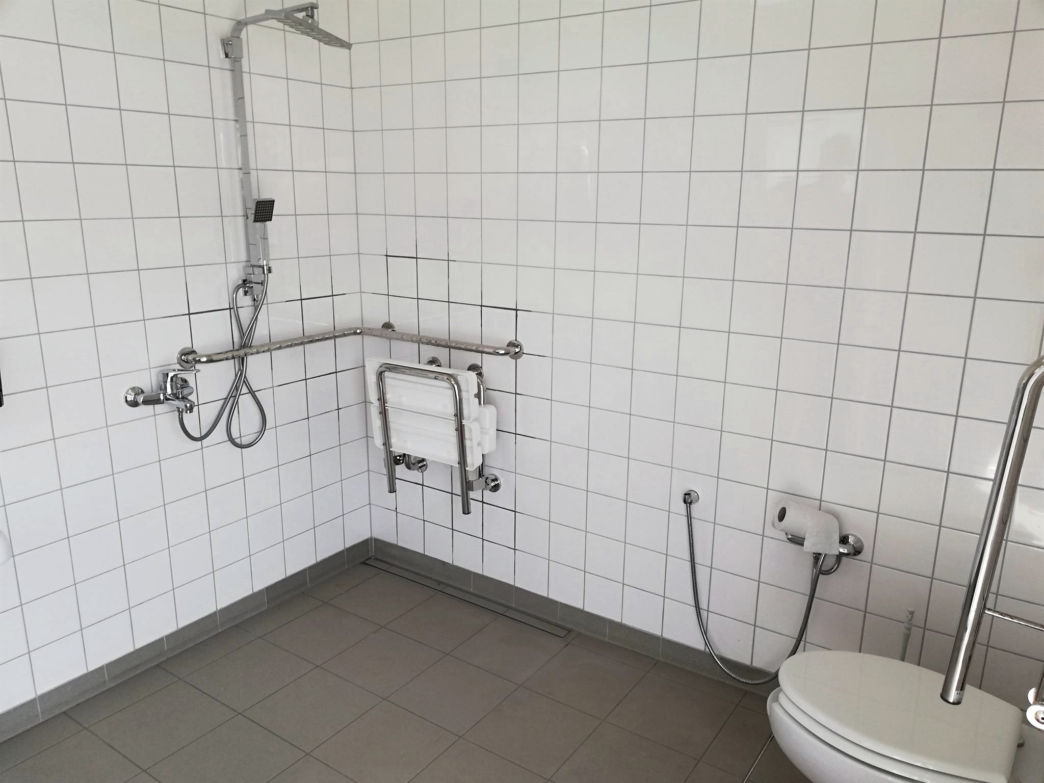Le camping dispose d'une salle de bain et de douche accessible aux personnes à mobilité réduite, d'une laveuse et sécheuse, d'une salle de télévision avec grand écran et d'un service de location de vélos. ( réservation en avance nécessaire)
