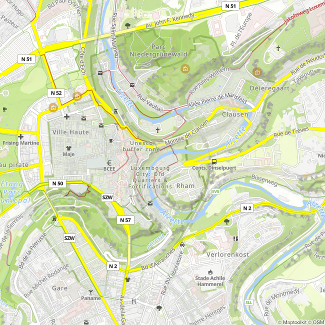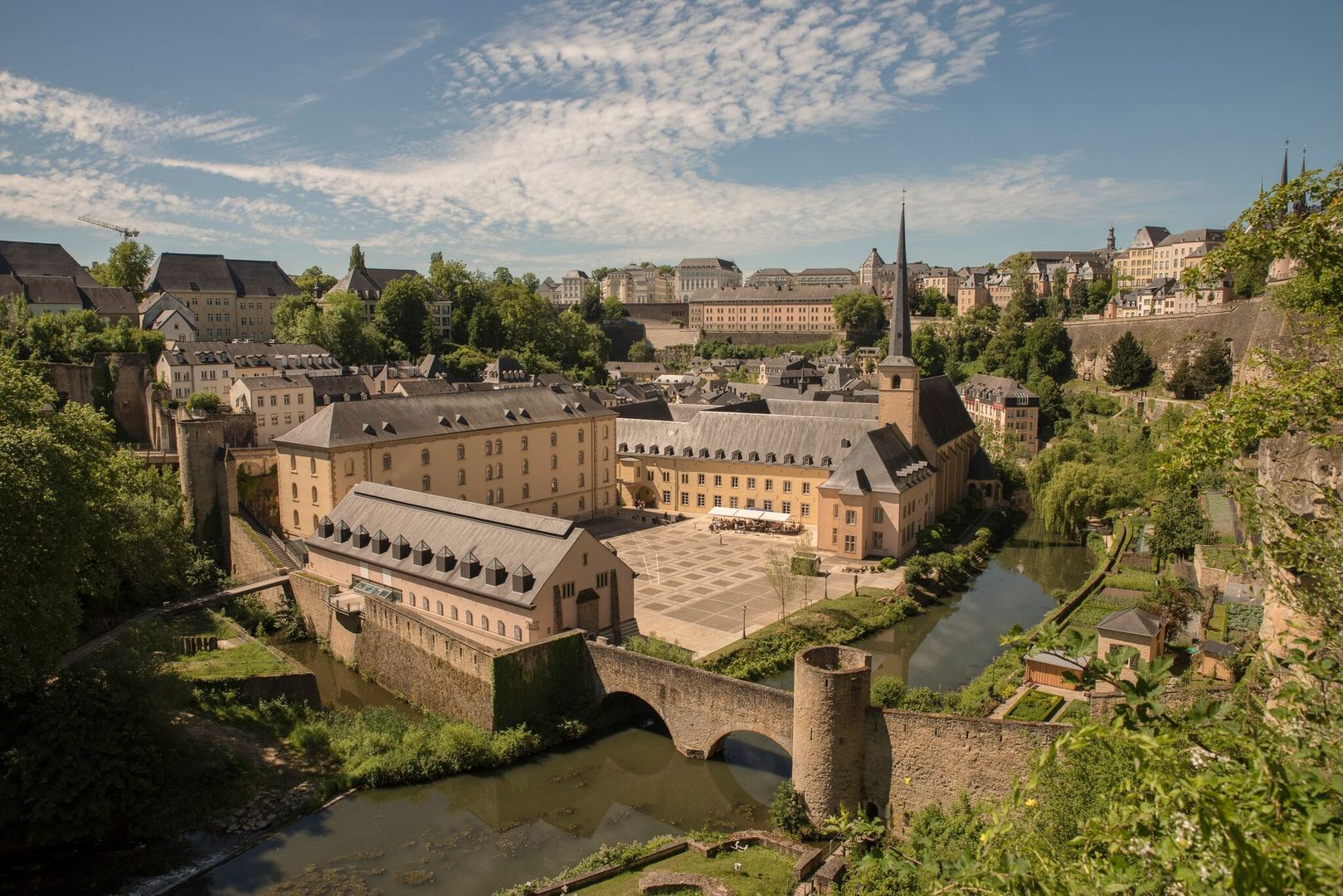 Das außergewöhnliche architektonische Ensemble befindet sich im Grund, einem pittoresken Viertel im Herzen der Altstadt, und ist Teil des UNESCO Welterbes. Die Anlage umfasst mehrere Gebäude mit insgesamt 20.000 Quadratmetern – davon 13.000 im Inneren und 7.000 als Außenfläche – und blickt auf vierhundert Jahre turbulente, spannende aber teils sehr düstere Geschichte zurück. In den 400 Jahren ihres Bestehens hat die Abtei nämlich schon verschiedene Funktionen erfüllt: Ursprünglich als Benediktinerabtei erbaut (1606), wurde sie wie alle anderen Klöster 1796 durch die französischen Revolutionsbehörden säkularisiert und diente bis 1867 als Militärhospital. Anschließend wurde die Abtei bis 1984 als Gefängnis genutzt, bevor den Mauern endlich wieder ihre Spiritualität zurückzugeben wurde. Nach Jahren der Restaurierungsarbeiten war es 2004 soweit - die Abtei Neumünster wurde erstmals wieder der Öffentlichkeit zugänglich gemacht und dient seitdem als Kultur- und Konferenzzentrum. Die Revanche der Geschichte war geglückt. Das Centre Culturel de Rencontre Abbaye de Neumünster – neimënster genannt – ist ein beliebter Kulturtreffpunkt und Touristenmagnet, der täglich für seine Besucher geöffnet hat. Regelmäßig finden (Open-Air) Konzerte, Theateraufführungen, Konferenzen und Ausstellungen statt.