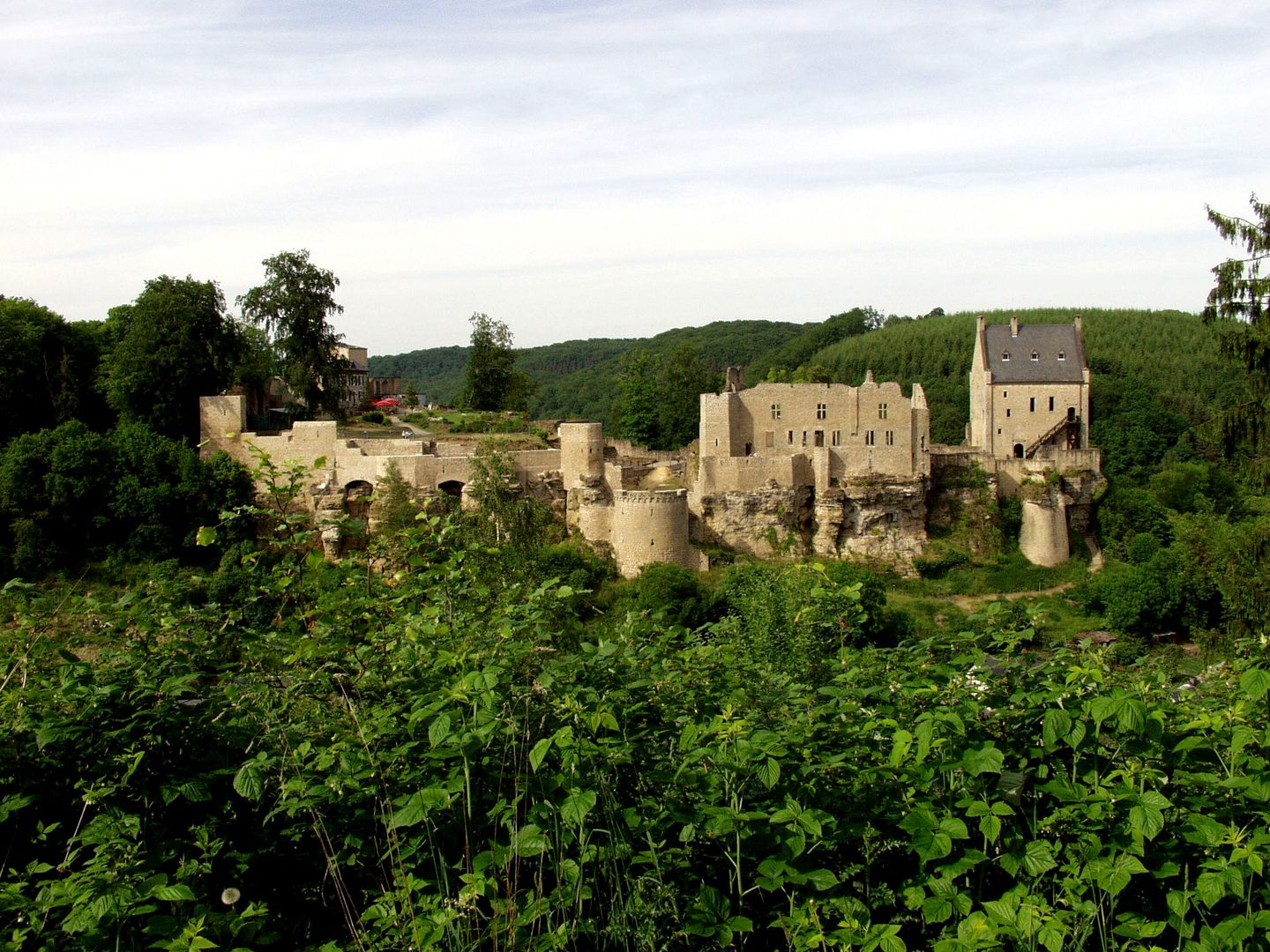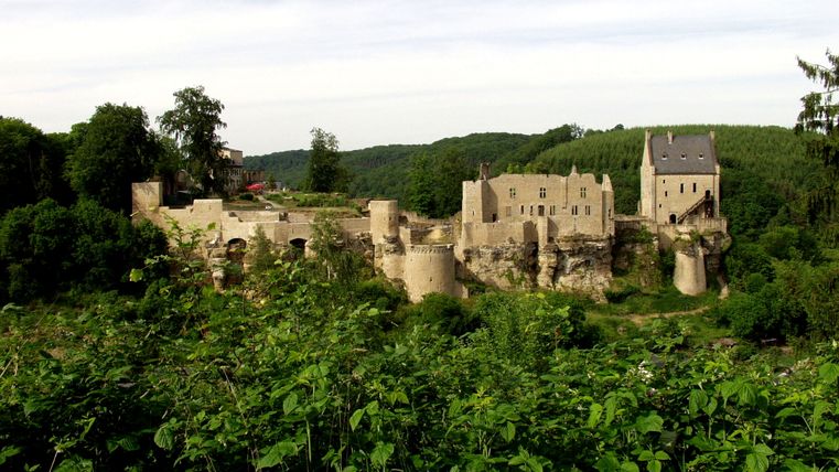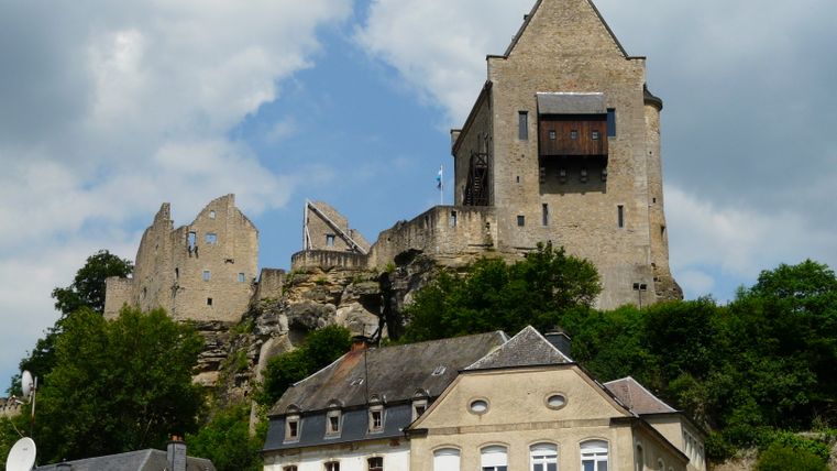 Der Weg zum Felsvorsprung führt durch eine weite, von einem Erdwall geschützte Vorburg. Die aus Hausteinen gebaute Hauptburg ist von einer Ringmauer umgeben, die heute größtenteils zerstört ist. Ein stellenweise natürlicher Graben teilt das Schloss in zwei Teile. Auf dem äußeren Ende des Vorsprungs zeugen die Überreste mehrerer herrschaftlicher Wohnsitze von der hohen Qualität der Prunkarchitektur. Nach der Erwerbung des Schlosses durch den Luxemburger Staat im Jahr 1979, wurde im historischen Burgbereich sogleich mit Restaurierungsarbeiten begonnen. Photogrammetrische Aufnahmen, die nach dem Kauf des Schlosses angefertigt wurden, konnten durch archäologische Ausgrabungen, die derzeit noch andauern, ergänzt werden. Die Herren von Fels erscheinen erstmals gegen Ende des 12. Jahrhunderts in den Texten, vor allem als Bannerträger des Hauses Luxemburg.