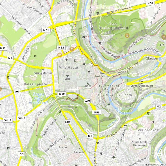 Der seit 2016 eröffnete gläserne Aufzug überwindet 71 Höhenmeter und verbindet das obere Stadtzentrum im dem Alzette-Tal. Es erwarten Sie einzigartige Panoramaaussichten.Die Fahrt ist kostenlos.