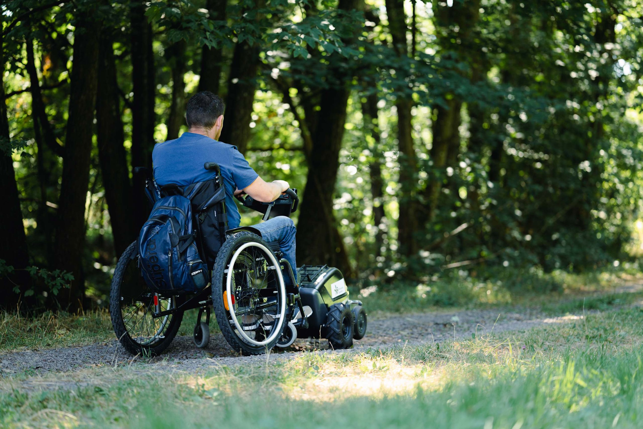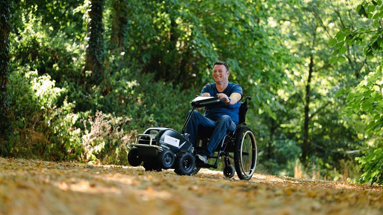 Die Swiss Tracs ermöglichen rollstuhlfahrenden Erwachsenen und Kindern im Alltag mehr Mobilität und Unabhängigkeit. In wenigen Sekunden kann der Elektroantrieb mit dem Rollstuhl verbunden werden. So können selbstständig bis zu 20 km zurückgelegt und kippsicher Absätze oder andere Hindernisse passiert werden. Steigungen und unebenes Gelände können mit einem Zuggerät mühelos überwunden werden, auch bei eingeschränkter Greiffunktion und wenig Kraft in den Armen.