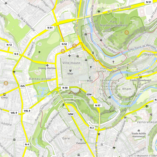 Der 5,5km lange Wenzelpfad verbindet Ober und Unterstadt miteinander und führt unter anderem an den Überresten der Festungsmauer, Bockfels, Abtei Neumünster, Altstadt, Rham Plateau und atemberaubenden Panoramaausblicken vorbei.