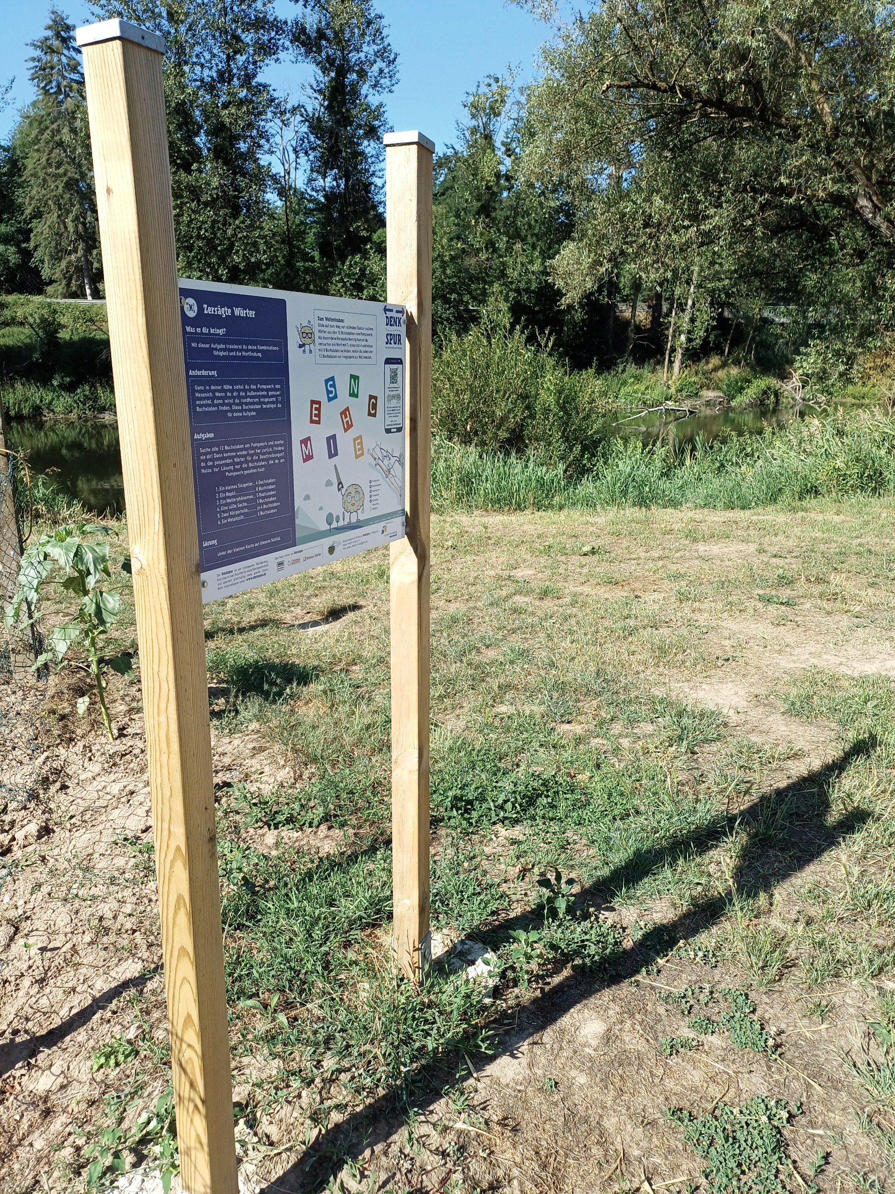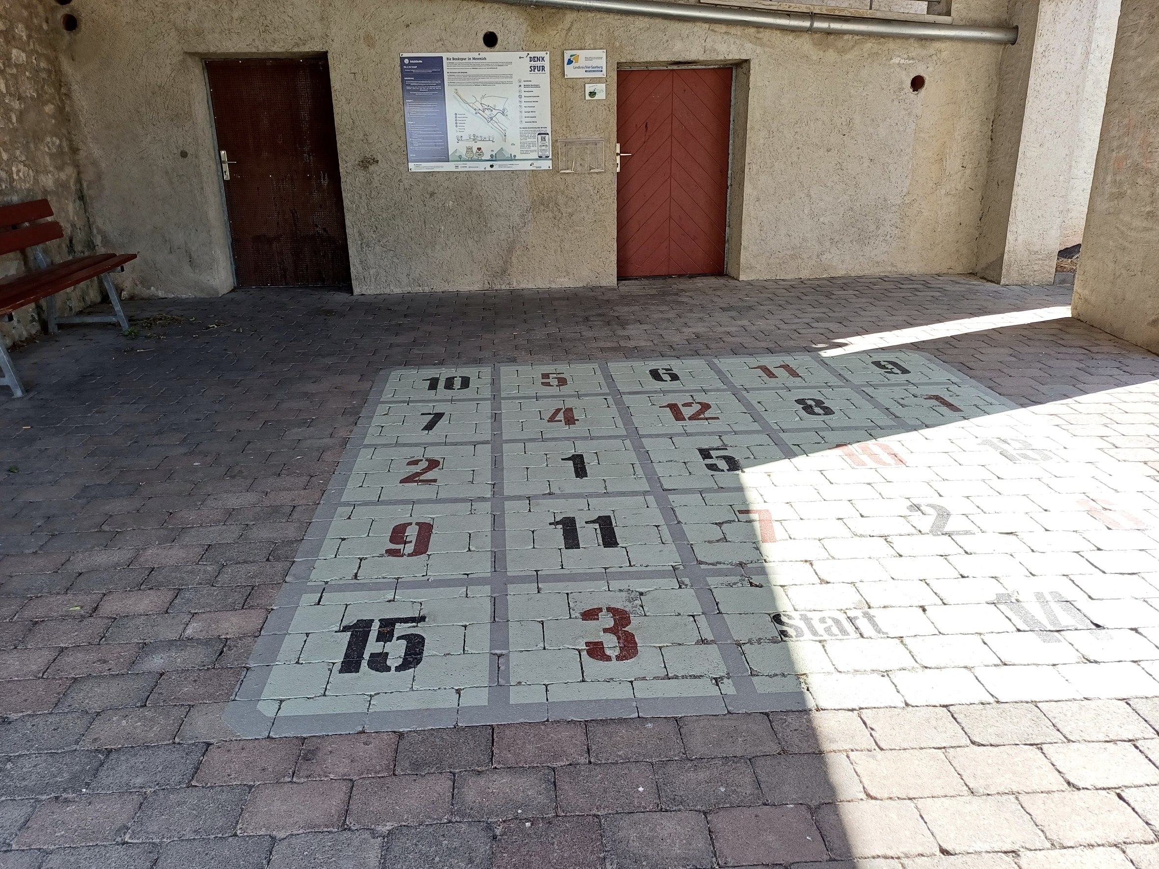 De stations hier in Mesenich zijn natuurlijk aangepast aan de locatie en veel dingen kunnen hier worden herontdekt. De kaart op de flyer (verkrijgbaar bij het toeristeninformatiecentrum) laat zien waar je de stations kunt vinden. Je kunt op elk station beginnen en dan de wegwijzers met de Denkis volgen. Veel van de stations zijn zo ontworpen dat ze met of door kinderen gespeeld kunnen worden.