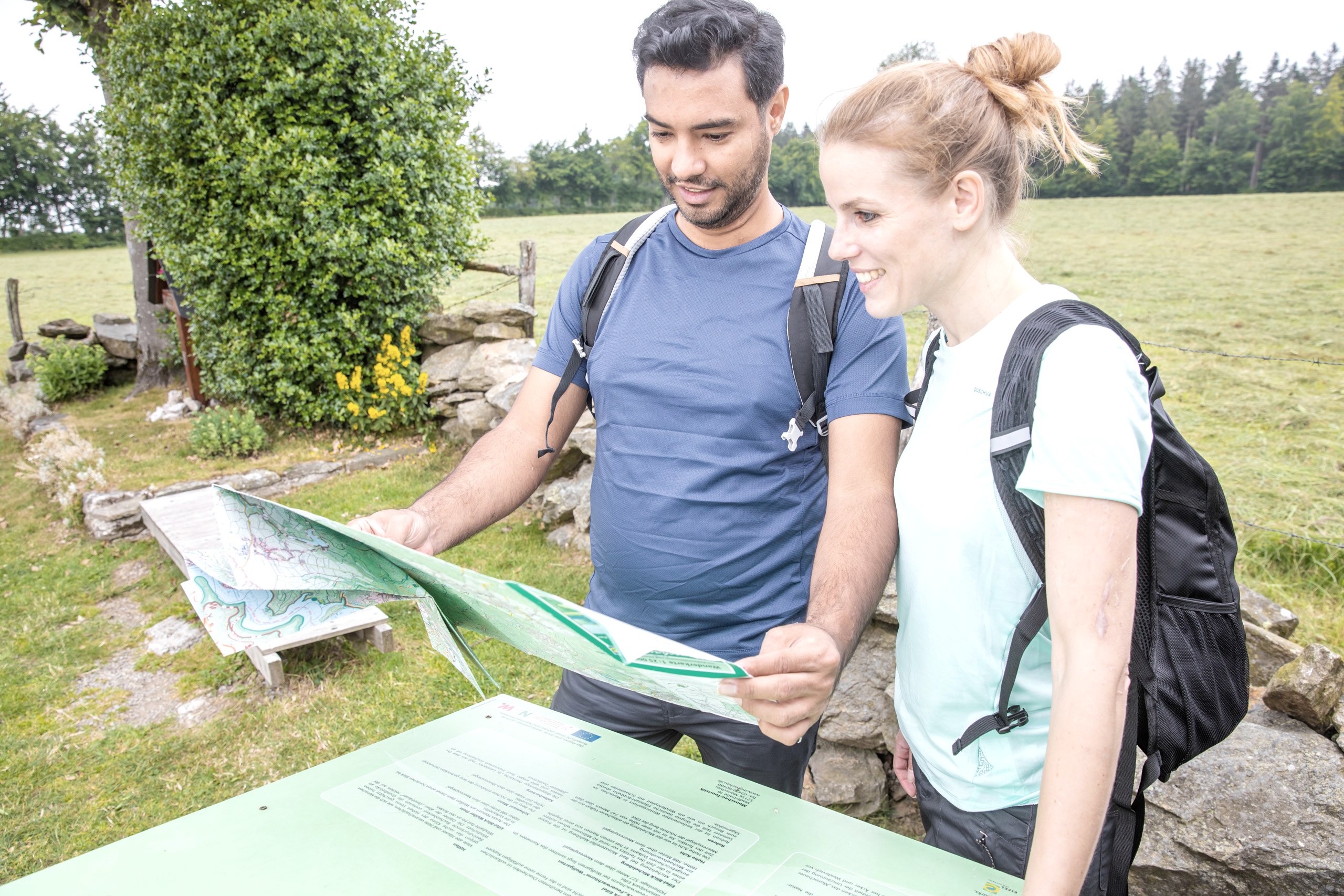 Meteen aan het begin van deze etappe betreed je een spannend grensgebied: je start je wandeling en steekt in Roetgen het tracé over van de oude Vennbahn, die bij België hoort. Daarachter ben je weer in Duitsland. Beter gezegd in een Duitse exclave - want dit deel van Roetgen wordt helemaal omgeven door België. De afwisseling tussen Duitsland en België hoort bij deze etappe. Maar van de staatsgrens is tegenwoordig niets meer te merken - alleen de wisselende Eifelsteig-markering maakt hem zichtbaar. In Duitsland wijst het Eifelsteig-logo je de weg, in België is het een geel-groene balk. Voor de mensen hier is het constante heen en weer gaan tussen de landen heel normaal - misschien zijn ze daarom ook zo open en evenwichtig.