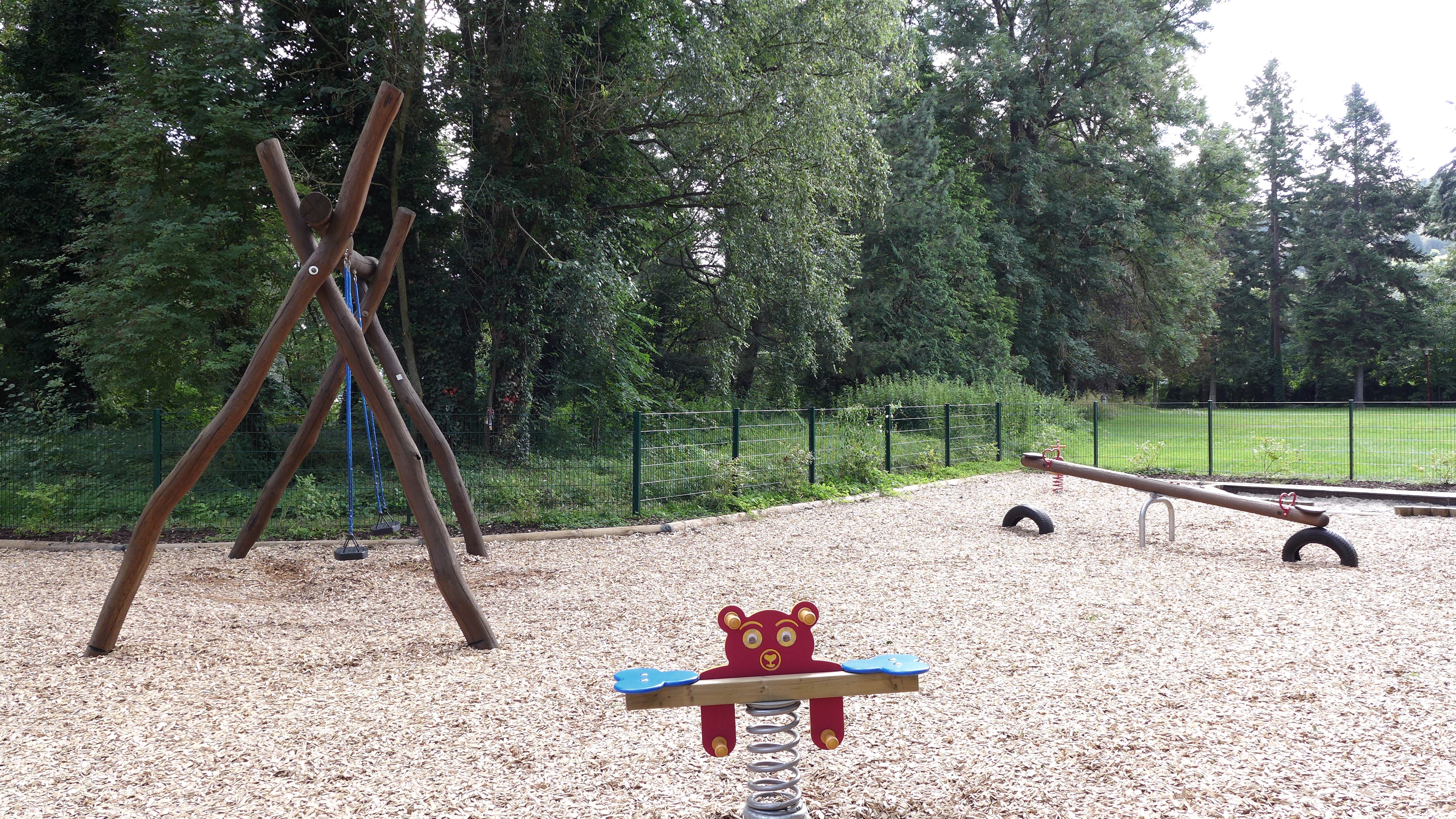 Prachtige, omheinde speeltuin in het park Mertert.