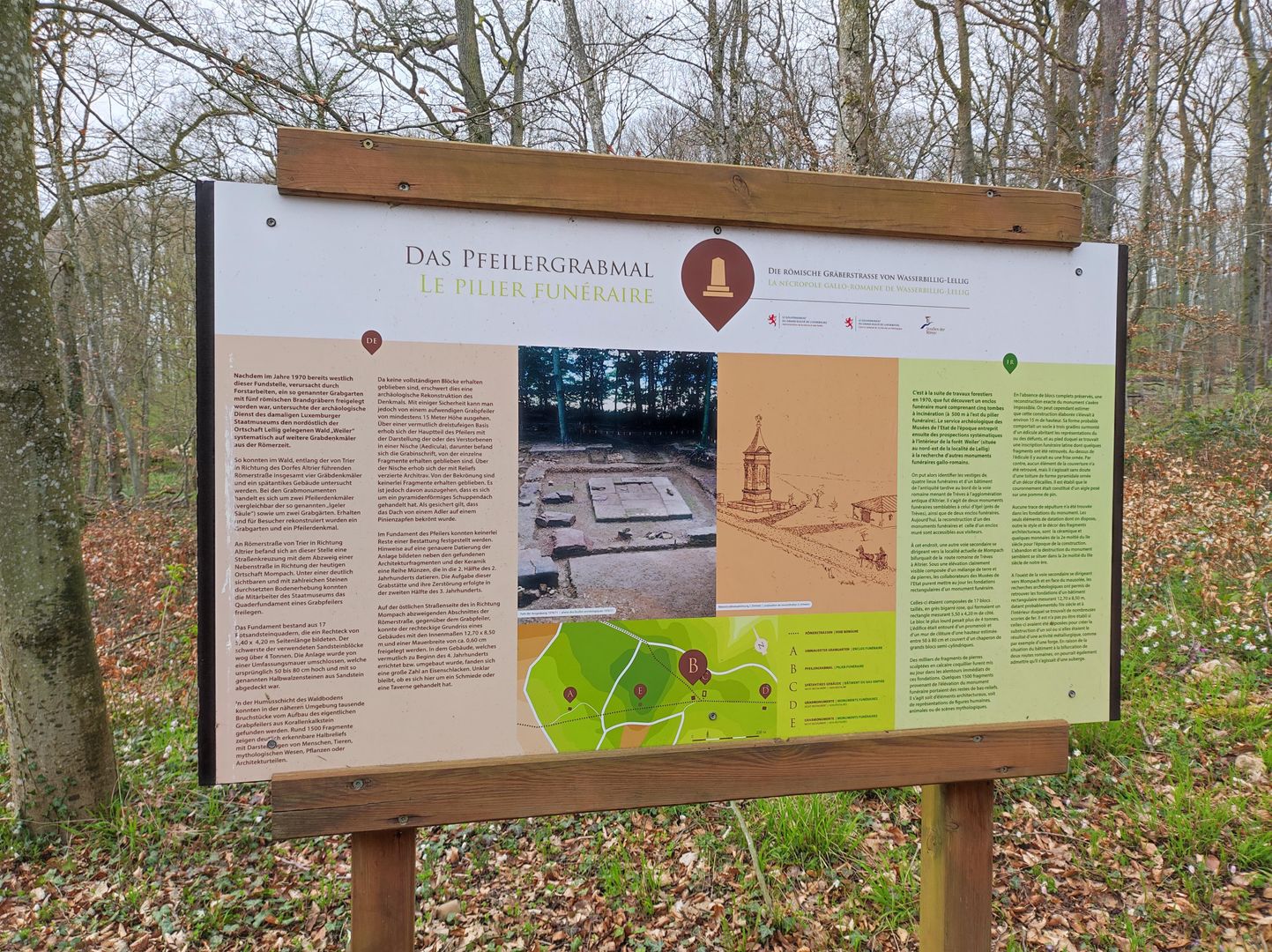 De gallo-Romeinse begraafplaats in de buurt van de weg tussen Wasserbillig en Lellig werd ontdekt in 1970.