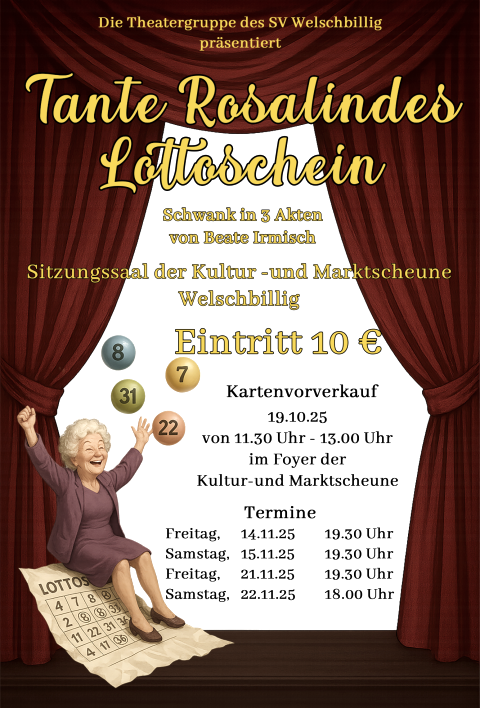 Voorverkoop: 19.10.2025 van 11.30 - 13.00 uur in de foyer van de cultuur- en marktschuur Welschbillig
