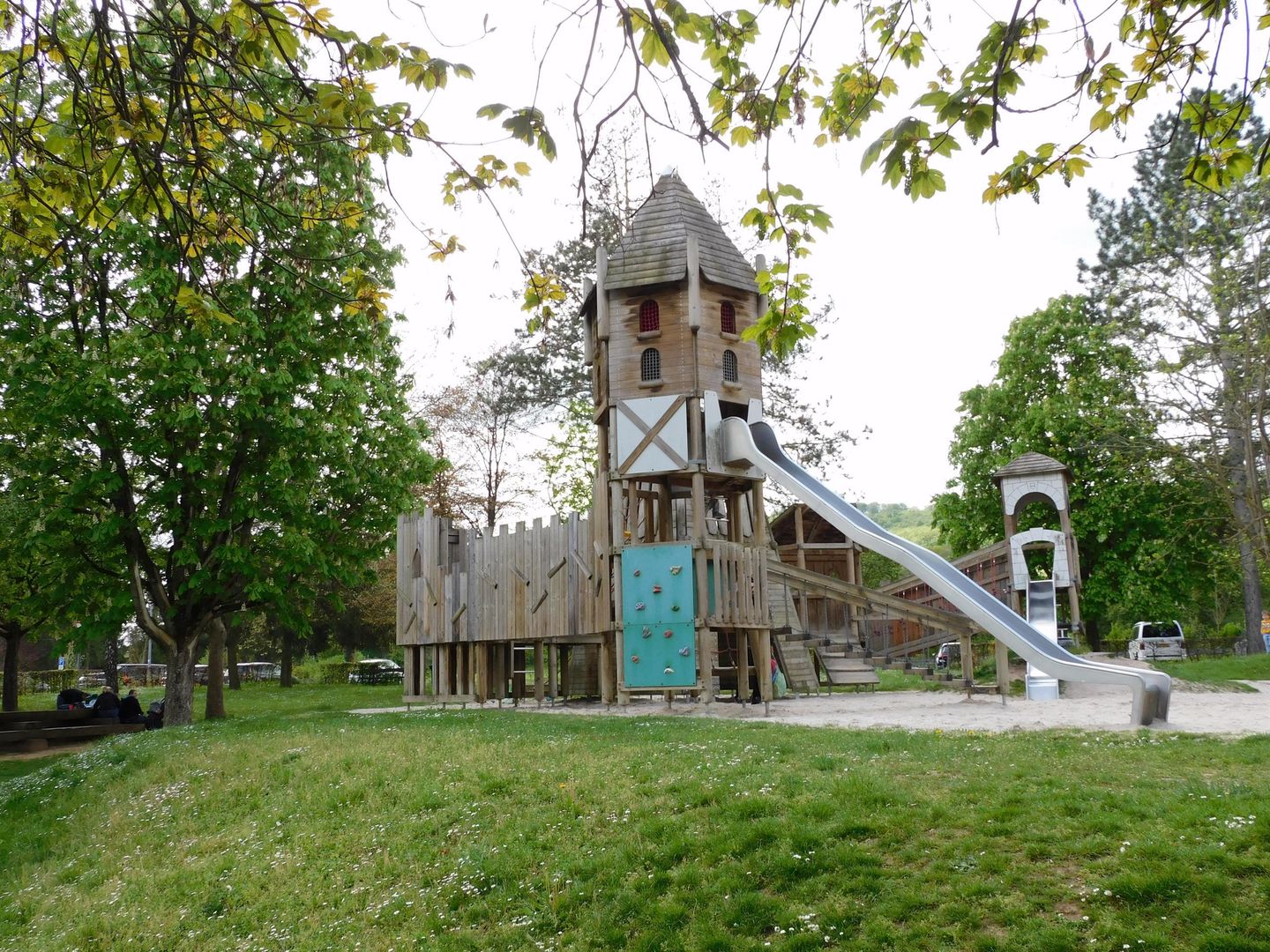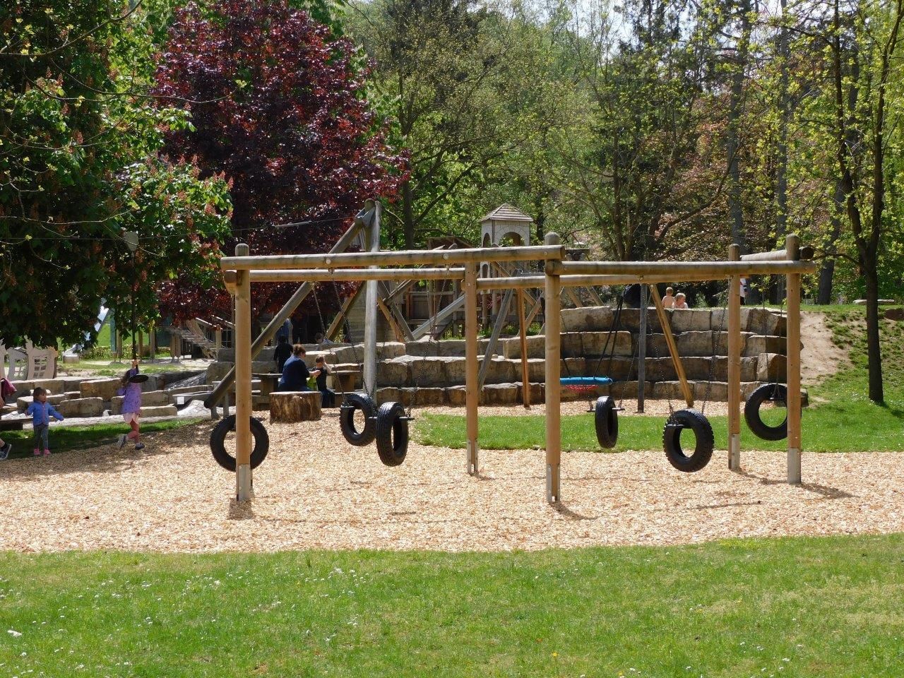 Das riesige Gelände mit Parkplätzen und Toilettenhaus hat für alle Altersgruppen eigene Bereiche zu bieten: vom Baby-Krabbelparcours über eine Wassermatschanlage zur gigantischen Ritterkletterburg. Spielgeräte Balancier-Element, Drehscheibe, Hangelgerät, Kletterbrücke, Klettergerät, Klettergerät mit Rutsche, Kletterwand, Nestschaukel, Reckstange, Rutsche, Sandfläche, Schaukel, Seilbahn, Spielhaus, Wasserspiele / Matschanlage, Wippe, Wipptier Schöner Wasserspielbereich und viele Picknick- und Relaxplätze für die Eltern. Wunderschön gelegen direkt an der Sauer. Ausstattungen Gastronomie / Kiosk, Liegt im Grünen, Parkplätze, Schatten, Sitzbänke, Toiletten