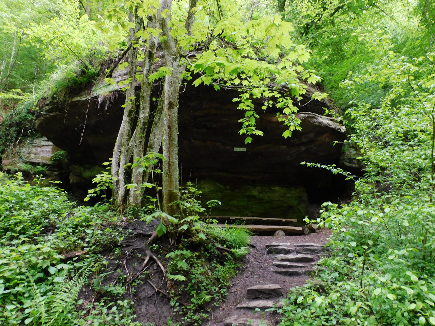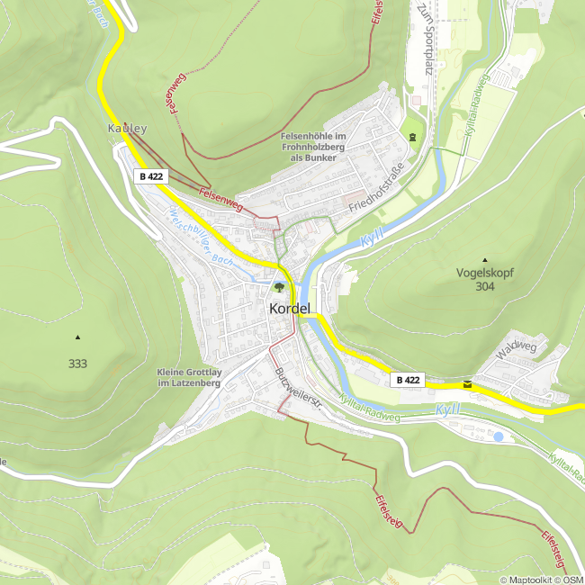 Rund um Kordel finden Sie eine Vielzahl von Buntsandstein-Felsen und Höhlen, unter anderem die Kaulay, die Geyersley und die Spitzley. Die Entstehung dieser Formationen hat eine lange Vergangenheit: Vor ca. 230 - 220 Millionen Jahren lag die heutige Südeifel am Rande eines größeren Meeres. Unter tropischen, wüstenähnlichen Bedingungen kam es in dieser Gegend zur Ablagerung von Flußmaterialien und durch Passatwinde herantransportierte und akkumulierte Dünensande. Diese Ablagerungen wurden im Laufe von Jahrmillionen zu dem noch heute anstehenden Buntsandstein verfestigt. Typisch für Sedimente ist ihre schichtweise Ablagerung. Daher kann man die Gesteine des Buntsandsteins noch weiter untergliedern (Unterer, Mittlerer, Oberer Buntsandstein sedimentiert. In dieser Sedimentationszeit kam es zunehmend zu einem wilden Nebeneinander von fluvialen Sand- und Kiesbankablagerungen (Gerölle), Stillwasserbereichen, Überschwemmungsgebieten und benachbart auch von äolischen Dünensanden. An Flußengstellen blieb aufgrund der höheren Strömungsintensität nur grobes Geröll zurück (Rinnensedimente), aus dem später die heutigen Felszonen entstanden sind (Konglomerate). Ungestört müßten heute die Sedimentpakete des örtlichen Buntsandsteins eine flache Tafellandschaft darstellen, aber durch weiträumig erfolgte Aufwölbung der Erdkruste und durch Hebungen und Senkungen (Verwerfungen, Klüftungen) tieferen Gesteins (unterhalb des sedimentierten Buntsandsteins), ist eine stark gestörte Bruchschollenlandschaft entstanden. Während die Buntsandsteinschichten aufgekippt wurden, grub sich die Kyll in das tektonisch bewegte Gestein immer tiefer hinein. Diese stark erodierende Wirkung der Kyll und ihrer Nebenbäche hat unter anderem auch zur Entstehung der Felsen bei Kordel beigetragen. Geyerley und weitere benachbarte Felsen (Hochburg, Spitzley, Korpesley, Kauley) aber sind als Pilzfelsen mit bis zu 30 m hohen Felswänden hauptsächlich durch selektive Verwitterung (widerstandsfähige Schichten über weicheren) entstanden. Die widerstandsfähigen Schichten, welche bei den angesprochenen Felsen meist kleine Plateaus und bastionsartige Felsvorsprünge bilden, stellen die oben angesprochenen ehemaligen Rinnensedimente mit hartem Koglomerat dar. Die sich unterhalb der konglomeratischen Felsbänke befindenden Sandsteine sind leicht erodierbar und verwitterbar und daher oft (auch bei der Geyersley) von Hangschutt bedeckt. Im rückwärtigen Bereich der Geyersley-Felsbastion fällt die flache, leicht geneigte Tafellagerung entlang des Wanderweges auf, der Weg verläuft relativ eben. Oben wurde schon auf die Zerstückelung der Buntsandsteinschichten hingewiesen, im Kleinen äußert sich dieser tektonische Vorgang im Auftreten senkrechter Klüfte im Gestein (bis zu 2 m breit). Beim Zusammentreffen dieser Kluftflächen und leicht erodierbarem Gestein (unterhalb der Felsen) ist im Laufe der Zeit durch Verwitterung und z.B. Strudelbildung durch Kyll und Nebenbäche zur Bildung von Klufthöhlen gekommen. Zu diesen Klufthöhlen zählen im Umkreis die Hochburghöhlen und Klausenhöhle. Dagegen ist die bekannteste Höhle des Gebietes, die Genovevahöhle, nur durch reine Auswitterung entstanden und wurde zusätzlich durch Menschenhand vergrößert. Die verwitterten Gesteinsreste befinden sich heute als Schuttkegel vor der Halbhöhle. Viele dieser geologischen Prozesse kann man auch unmittelbar auf der Felsbastion der Geyersley beobachten. An den Konglomeratblöcken auf dem Felsplauteau (mit bis zu 10 m großen Geröllen) setzt wabenartige Verwitterung nur ganz allmählich ein. Man erkennt, dass der Sandstein zwischen den Geröllen geschichtet ist. Gelbe Flecken und Überzüge auf dem Gestein stellen Salzausblühungen dar. Aufgrund ihrer seltenen Eigenart ist die Geyersley (und viele benachbarte Felsen) als Naturdenkmal ausgewiesen. Das häufige Vorkommen konglomeratischer Felszonen ist in dieser Art in der Südeifel bei Kordel einzigartig.