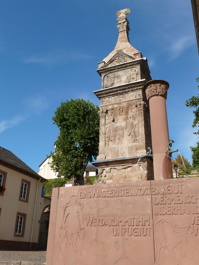 23 Meter ragt das Pfeilergrabmal empor, stand an einer alten Römerstraße und markierte möglicherweise den „Grabgarten“ der Familie. Das Monument wird auf die Zeit um 220 n. Chr. datiert und war einst bunt bemalt.