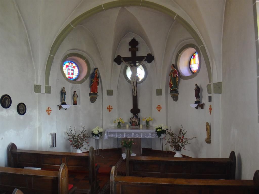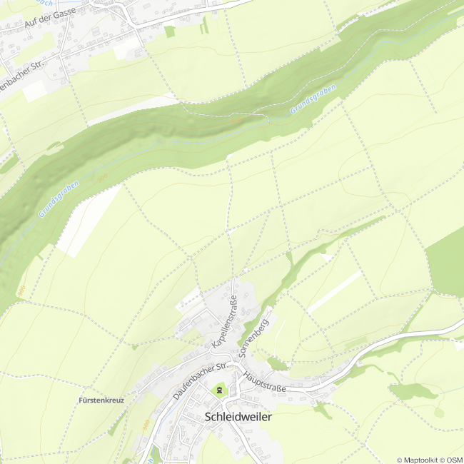 Die neugotische Kreuzkapelle im Ortsteil Schleidweiler wurde im Jahr 1894 gebaut. Ein Kreuzweg mit 14 Stationen aus individuell gestalteten Sandsteinpfeilern führt zur Kreuzkapelle, die über Schleidweiler thront. Beginnend im Kernbereich Schleidweiler begleitet den Besucher 14 Kreuzwegstationen zur Kreuzkapelle. An der Kreuzkapelle auf dem Bergrücken angekommen wird der Besucher mit einen wunderschönen Blick über die "Fidei" - vom Meulenwald bis ins Bitburger Land - belohnt.
