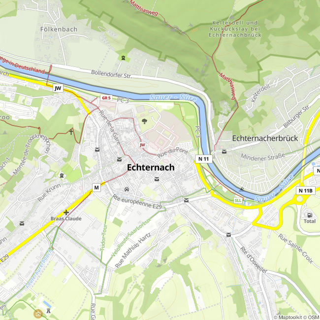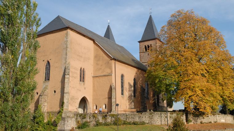 In der Kirche sind unterschiedliche Stilelemente längst vergangener Zeiten zu finden, angefangen bei den Römern über die Merowinger (ältestes Königsgeschlecht der Franken), sowie die Epoche der Romanik und der Gotik. Ein Blickfang ist der römische Springbrunnen im Innenraum der Kirche, welche einst auf einem römischen Kastell erbaut wurde.