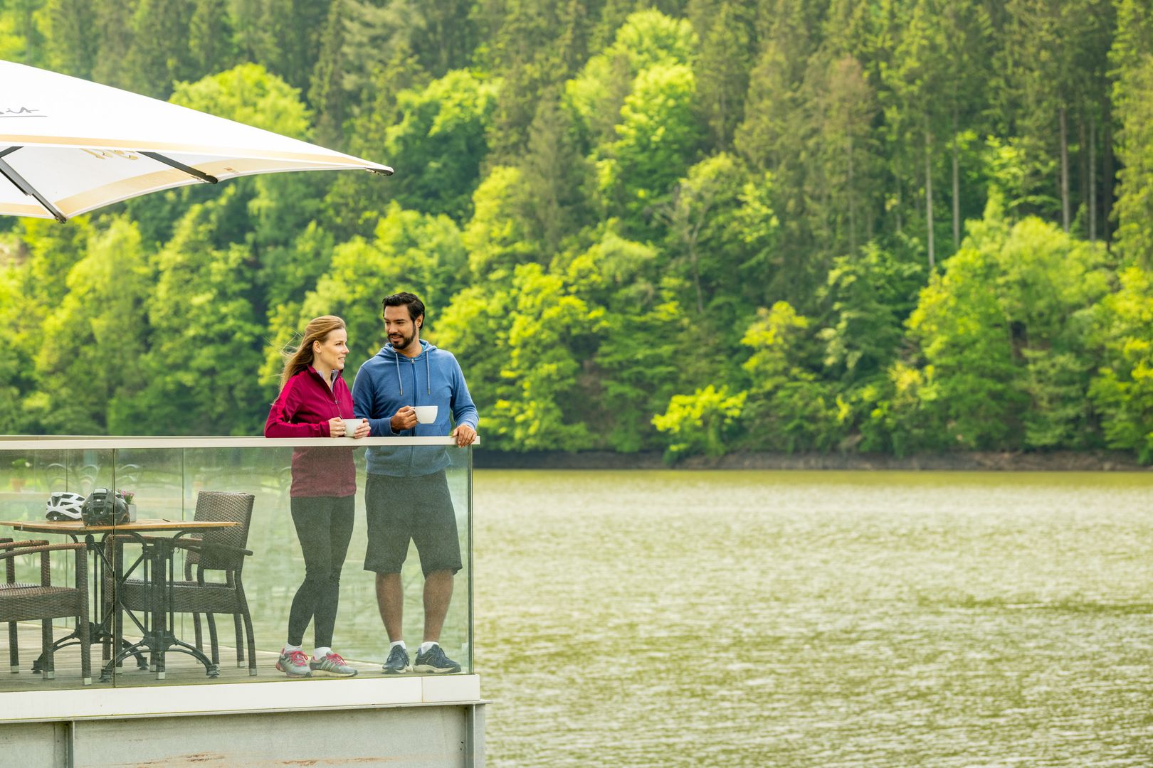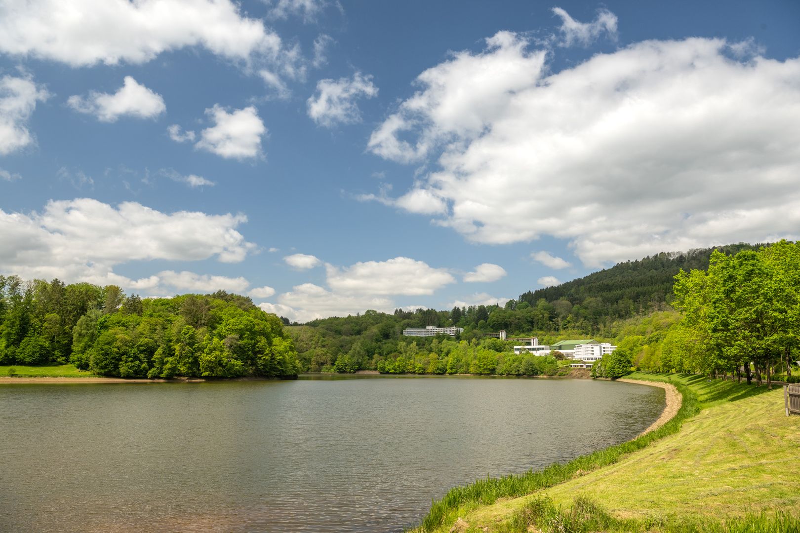 Der Stausee bei Biersdorf, gelegen im malerischen Tal der Prüm, ist das Herzstück des touristischen Angebots in der Südeifel. An der rund fünf Kilometer langen Seeuferpromenade können Besucher gemütliche Spaziergänge genießen. Eine Vielzahl von Gaststätten, Restaurants und Cafés liegt in unmittelbarer Nähe und lädt zum Verweilen ein.