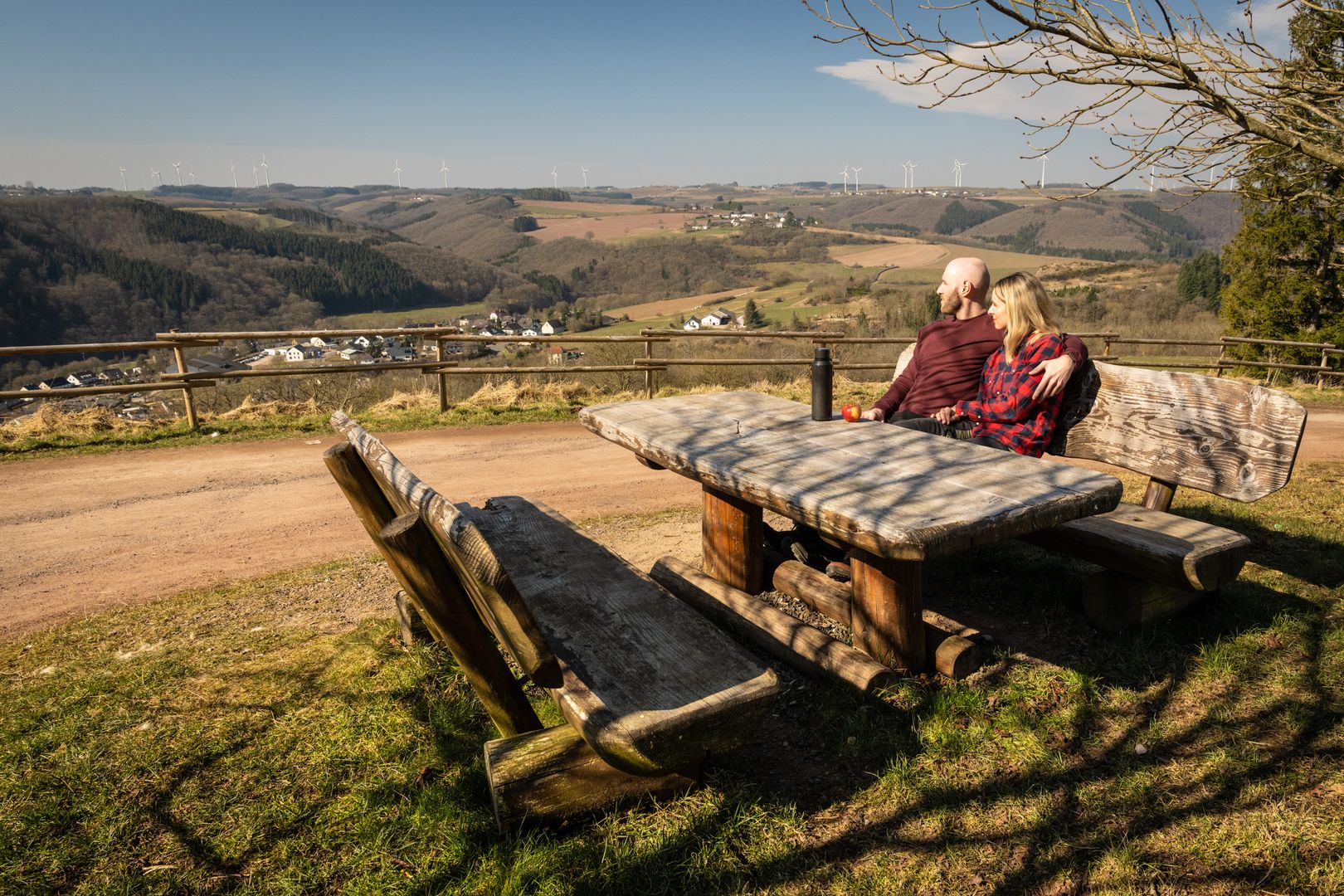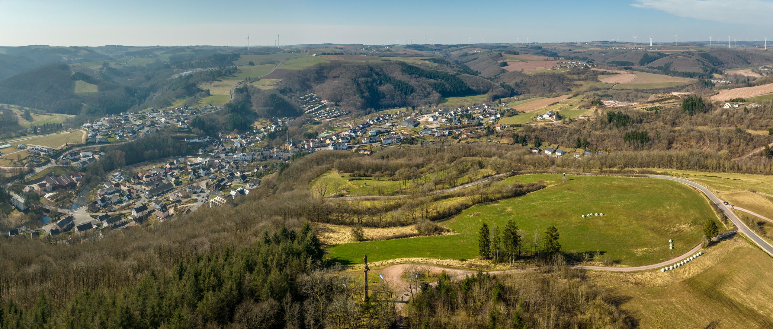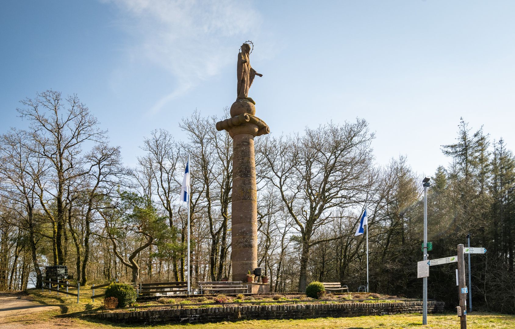 Gleich am Start an der Mariensäule begrüßt euch das erste Eifel-Panorama mit Blick auf Waxweiler mit dem Südeifeldom. Zunächst geht es knackig bergan über den Eichelsberg bis zum Trielsberg, dann über sonnengeflutete Wiesen und durch lichten Wald bergab ins malerische Weiherbachtal, dem ihr bis Waxweiler folgt. Ein Abstecher ins Urzeitmuseum DEVONIUM sei euch ans Herz gelegt, denn hier kommt ihr dem spannenden Landgang der Tiere und Pflanzen vor rund 400 Millionen Jahren unterhaltsam auf die Spur.