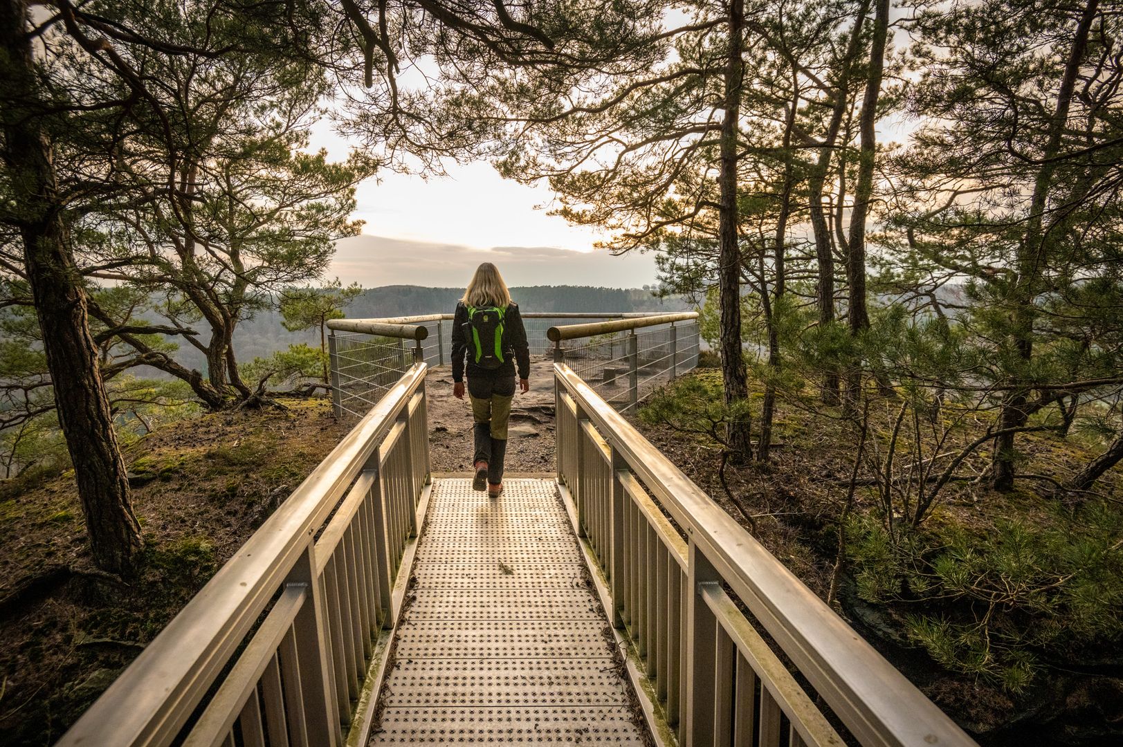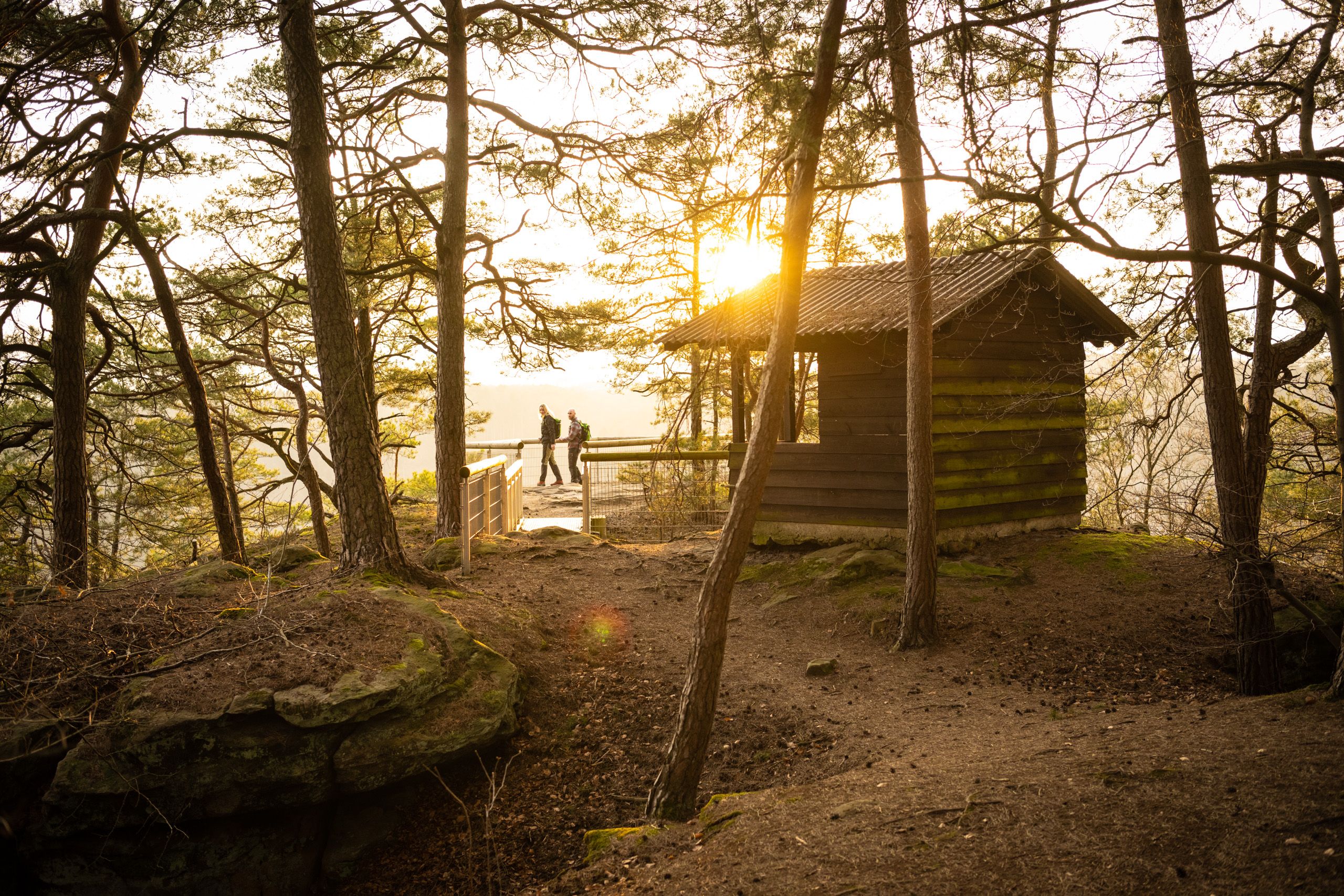 Auf dem Felsenweg 5 erwandert ihr die Ostflanke des Prümtals zwischen Irrel und Holsthum. Der Weg führt euch zunächst Richtung Süden zum Katzenkopf mit seinem Westwallmuseum, eines der wenigen zu besichtigenden Panzerwerke des 2. Weltkriegs. Schüttelt die finsteren Gedanken ab, nehmt einen tiefen Zug frischer Waldluft und folgt nordwärts dem bewaldeten Rücken zwischen Prüm und Nims. Flankiert von bizarren Felstürmen wandert ihr entlang einer Felskante mit atemberaubenden Ausblicke ins Prümtal, passiert die Siedlung Prümer Burg, streift die Rochuskapelle und erreicht die Höhe Holsthumerberg, wo sich die Route nun wieder talwärts wendet.