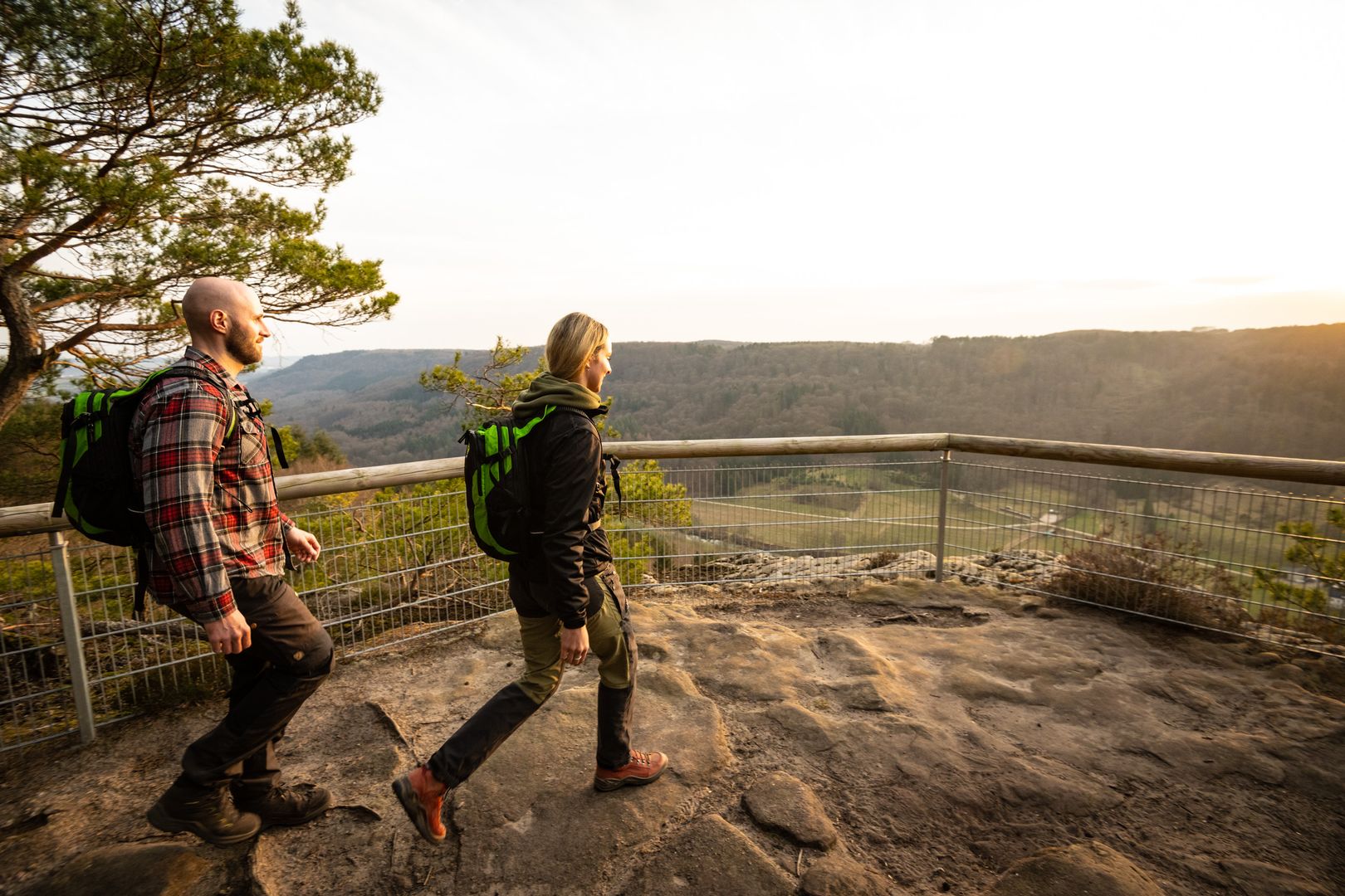 Von hier oben präsentiert sich Holsthum wie eine wunderschön gestaltete Spielzeuglandschaft: Streuobstwiesen, Weiden und Felder, Gärten und Häuser bilden ein buntes Mosaik einer lebendigen Kulturlandschaft. Eine Besonderheit sind die großen Hopfenfelder, denn hier wird einer der besten Hopfen Deutschlands angebaut – im einzigen Hopfenanbaugebiet von Rheinland-Pfalz.