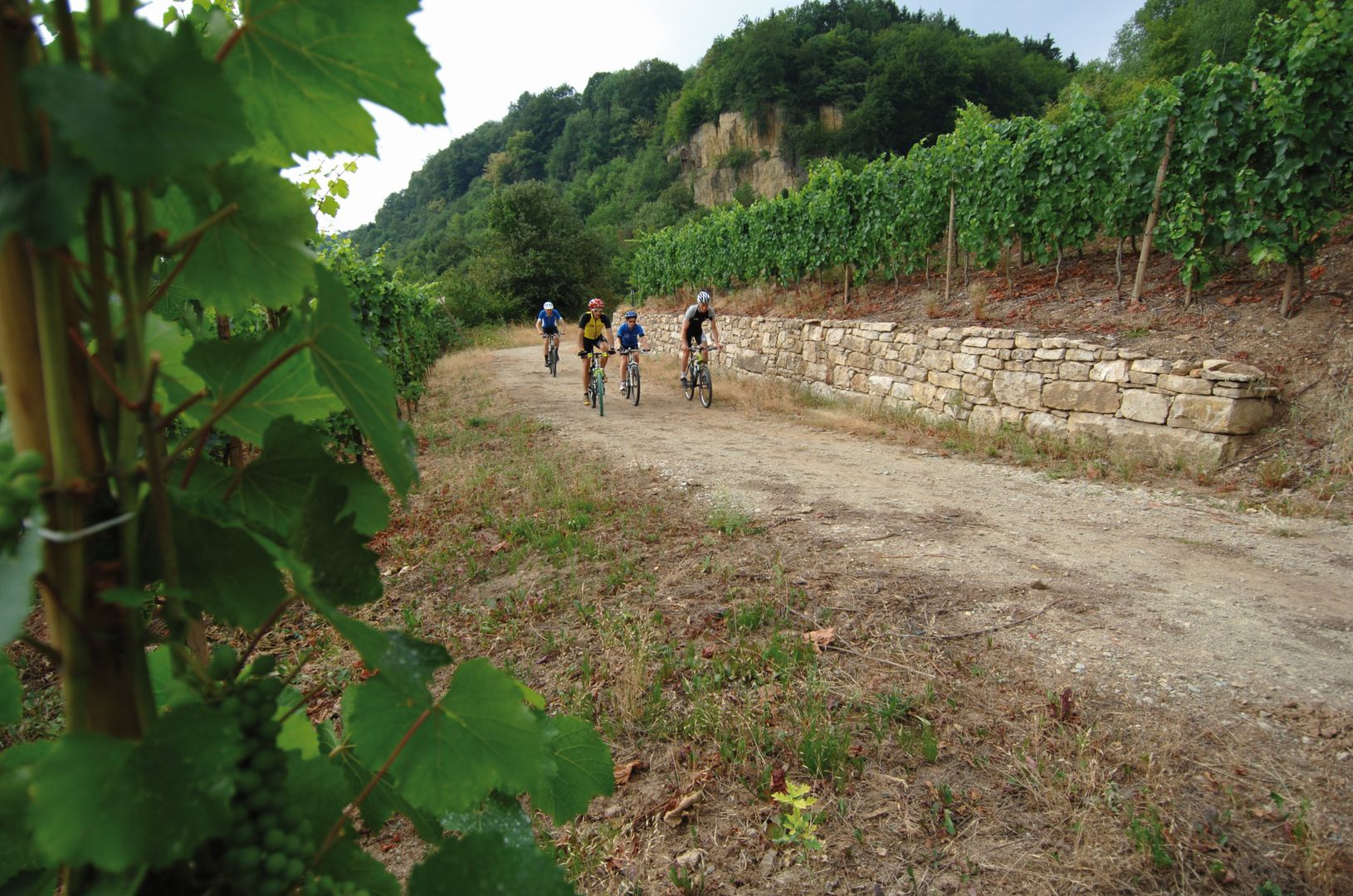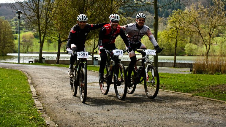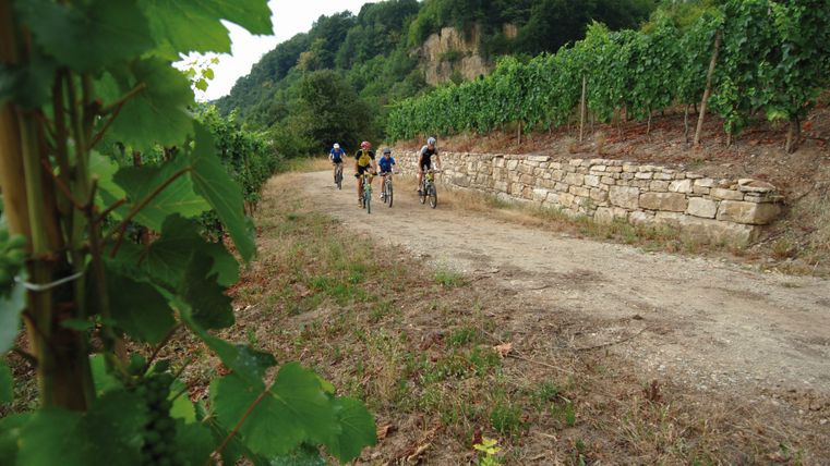 Dieser Mountainbike-Rundweg gehört zu den abwechslungsreichsten und interessantesten der Moselgegend. Sie starten mit ihrer Tour in Greiveldange, einem malerischen, typischen Winzerdorf, und fahren anschließend die Weinberge hoch. Auf dieser Höhe können Sie den herrlichen Blick auf die weiter unten liegende Mosel genießen. Sie fahren durch dichte Wälder in Richtung Lenningen und erreichen Ihr Ziel, mit einer Abfahrt durch Wiesen, in Stadtbredimus, am Ufer der Mosel. Bekannt ist dieser Ort für sein Schloss, indem sich die Keller der Winzerkooperative „Vinsmoselle“ befinden und für seinen Staudamm. Außerdem wurde hier der Nationaldichter, Edmond de la Fontaine, besser bekannt unter dem Namen „Dicks“, geboren. Auf dem Rückweg nach Greiveldange bekommen Sie noch ein weiteres Mal die Möglichkeit den prächtigen Ausblick auf die Flussschleifen der Mosel zu genießen.