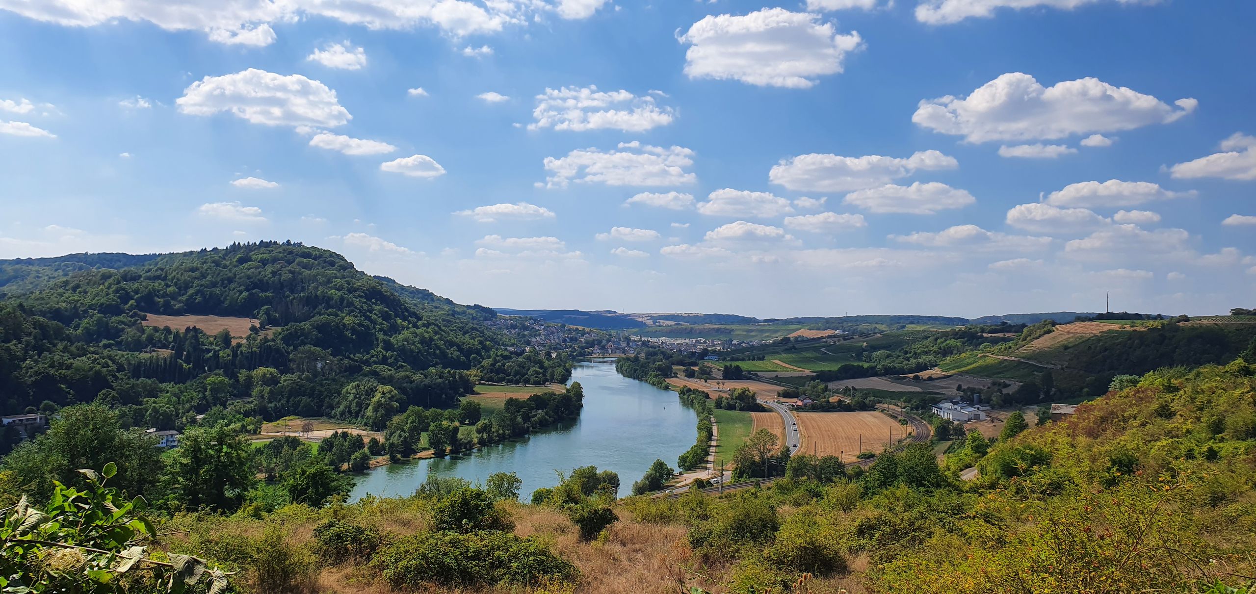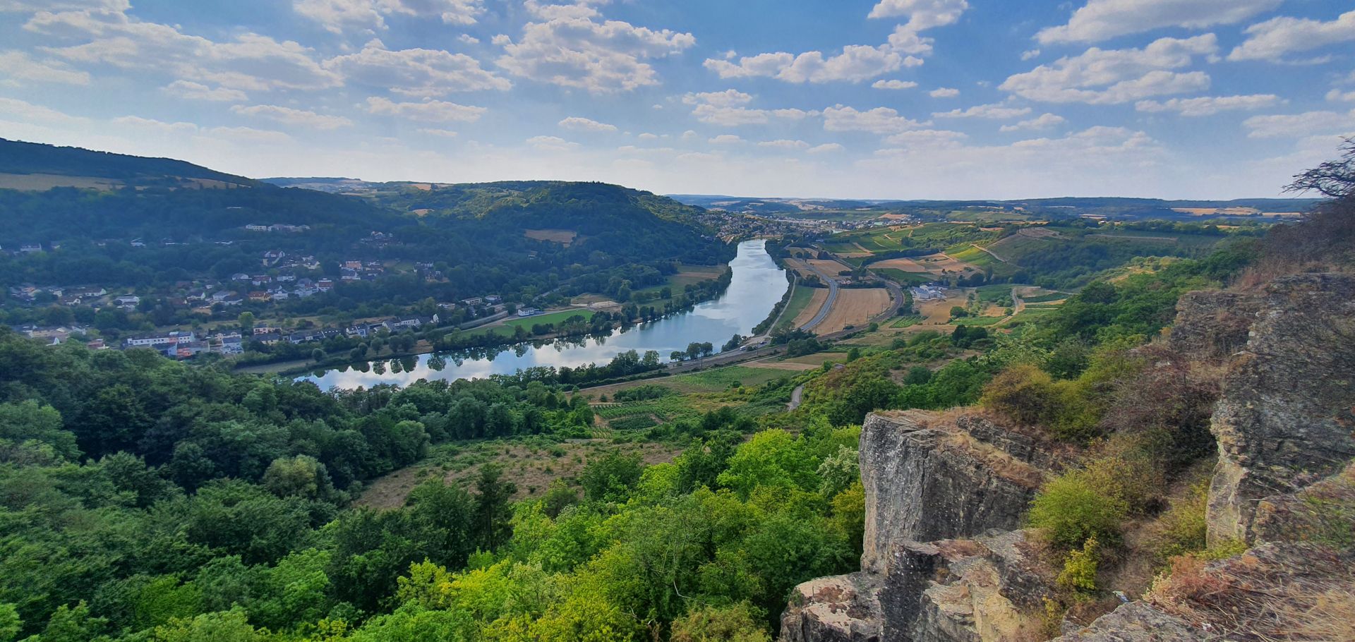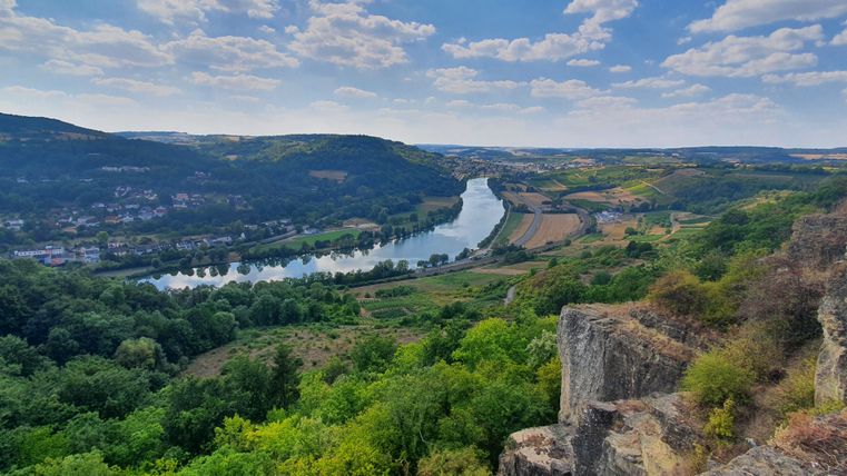 Auf dieser Tour wechseln sich saftig grüne Weiden, weite Felder und Streuobstwiesen ab. Und auch das Auge kommt nicht zu kurz, beim felsigen Aussichtspunkt „der Richardshöhe“ erschliesst sich ein wunderbarer Blick ins Moseltal und auf die Weinberge.