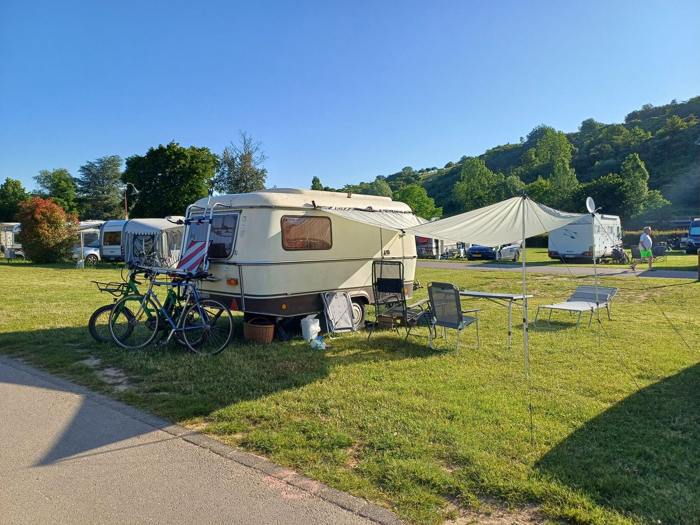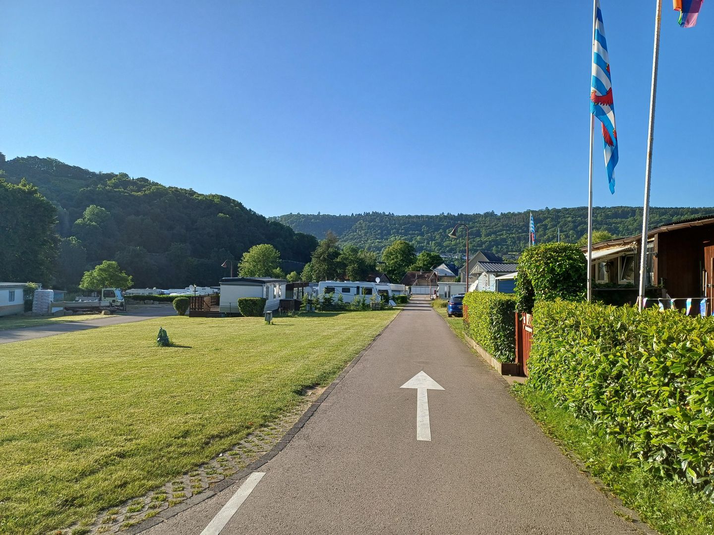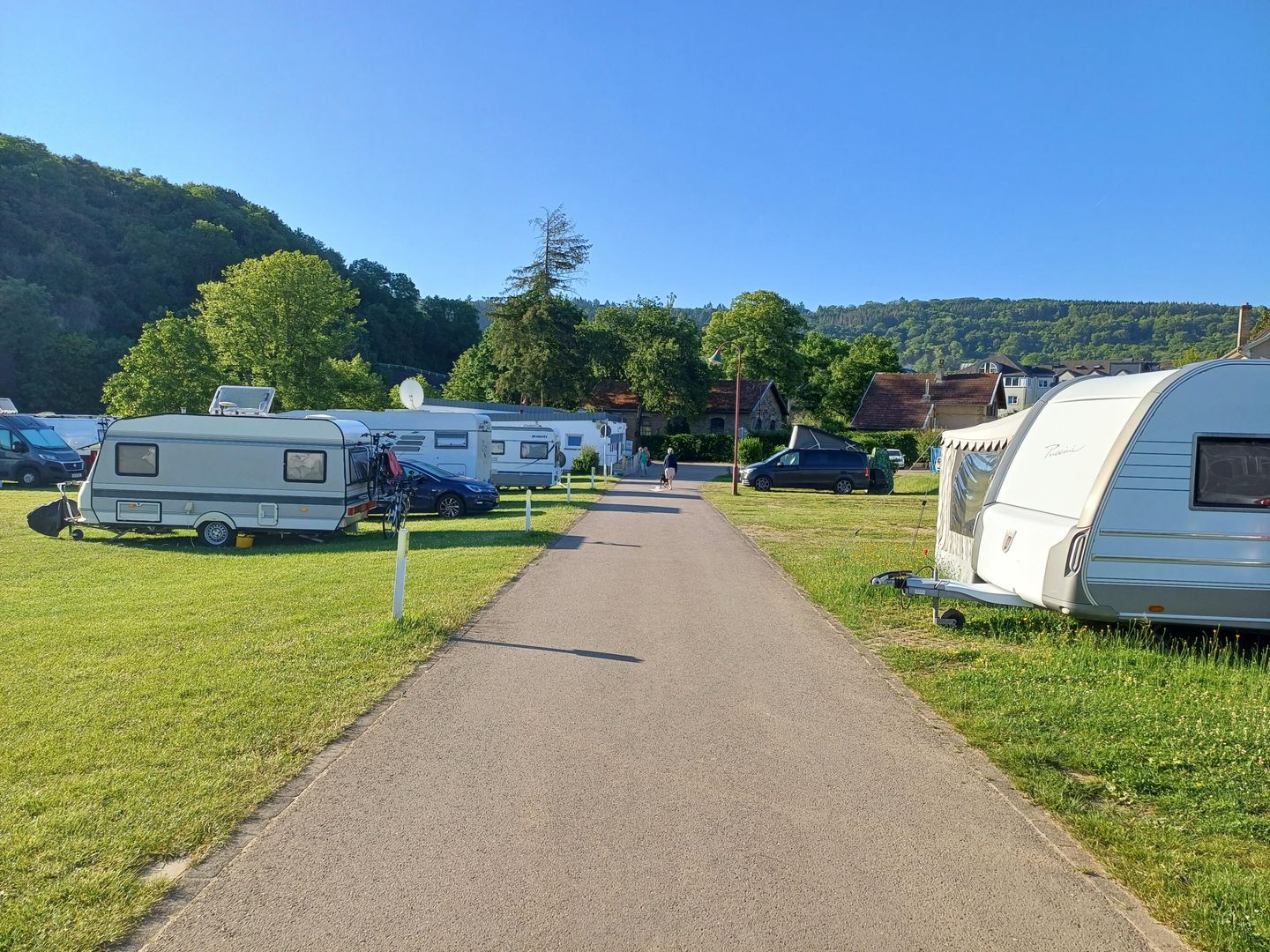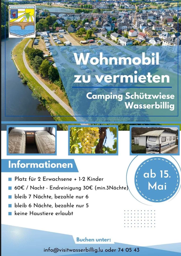 Unser Camping liegt in ruhiger Lage am Ufer von zwei Flüssen (der schönen Mosel und der Sauer) am tiefsten Punkt des Landes.