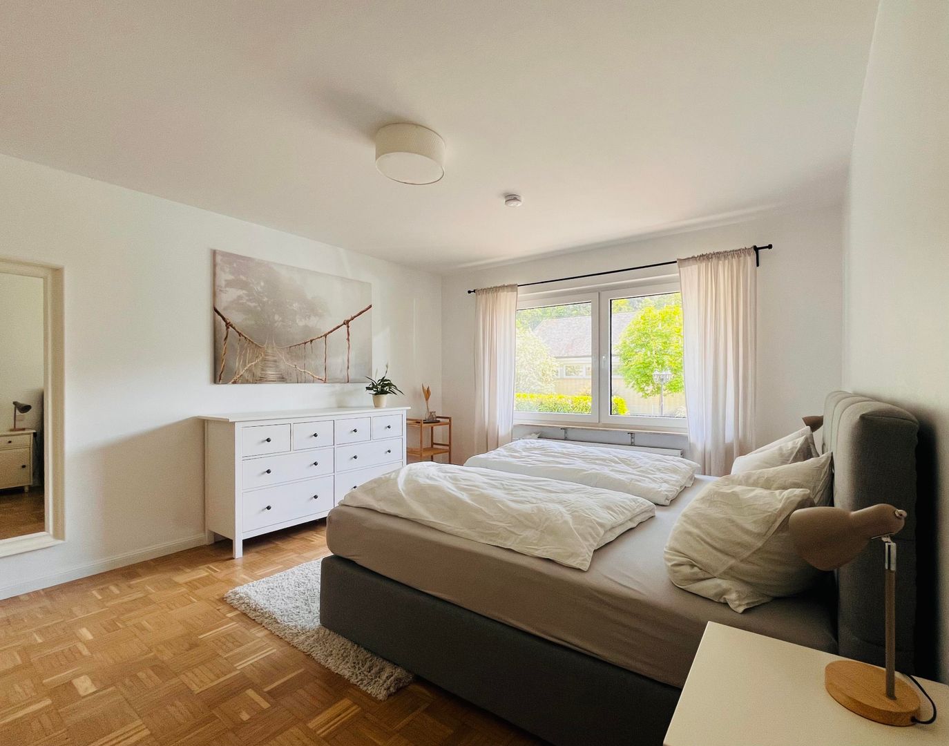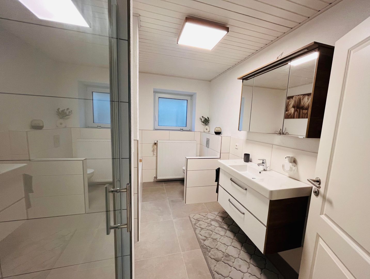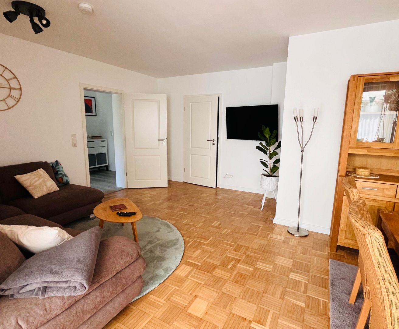 Unsere geräumige und doch sehr gemütliche Ferienwohnung wurde 2023/2024 komplett saniert. Sie verfügt über zwei Schlafzimmer, die mit bequemen Doppelbetten (1,80 m und 1,40 m) ausgestattet sind. Im geräumigen Badezimmer befinden sich eine Badewanne sowie eine bodentiefe Dusche. Auch Hand- und Duschtücher, Shampoo und Duschgel sowie ein Föhn haben hier ihren Platz.