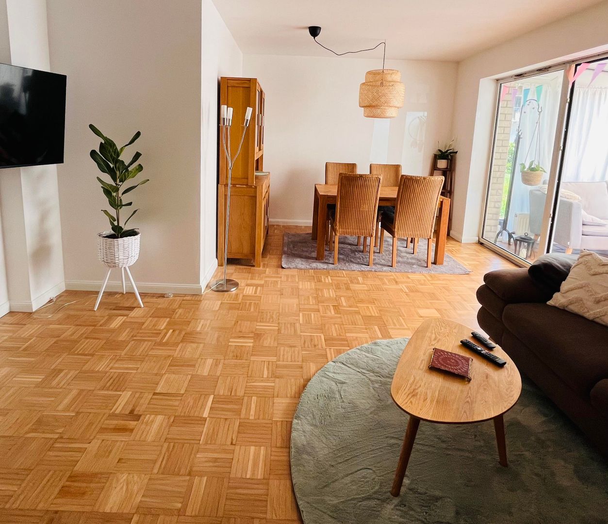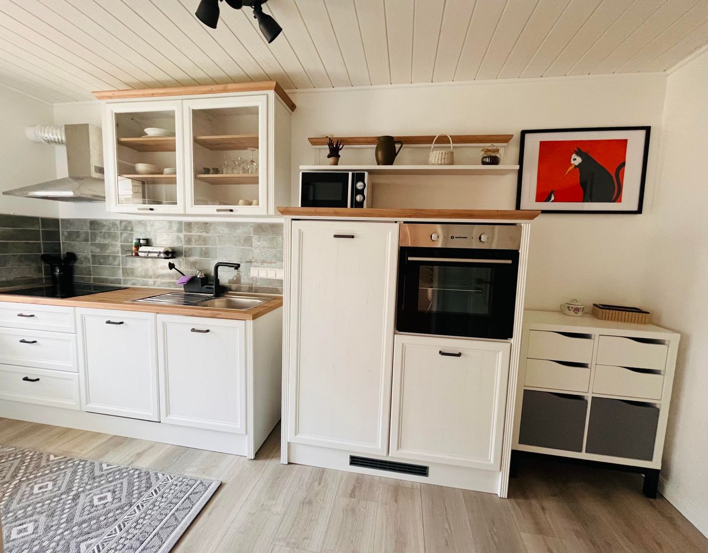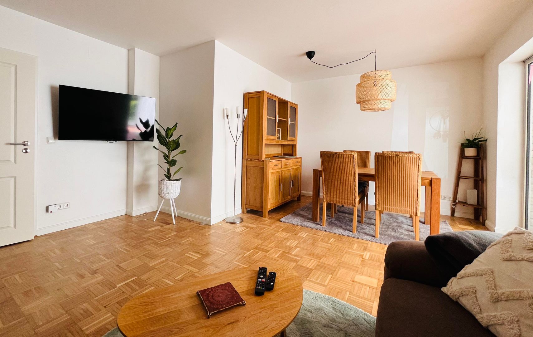 Die Küche ist mit Backofen, Herd, Kühlschrank, Mikrowelle, Spülmaschine, Kaffeemaschine, Toaster ausgestattet. Im großen Wohn- und Esszimmer befindet sich ein Tisch, an dem bis zu vier Personen Platz finden. Der Fernseher verfügt über Amazon-Prime-TV und Magenta-TV, das von unseren Gästen gerne genutzt werden darf. Selbstverständlich ist in allen Räumen W-LAN vorhanden.