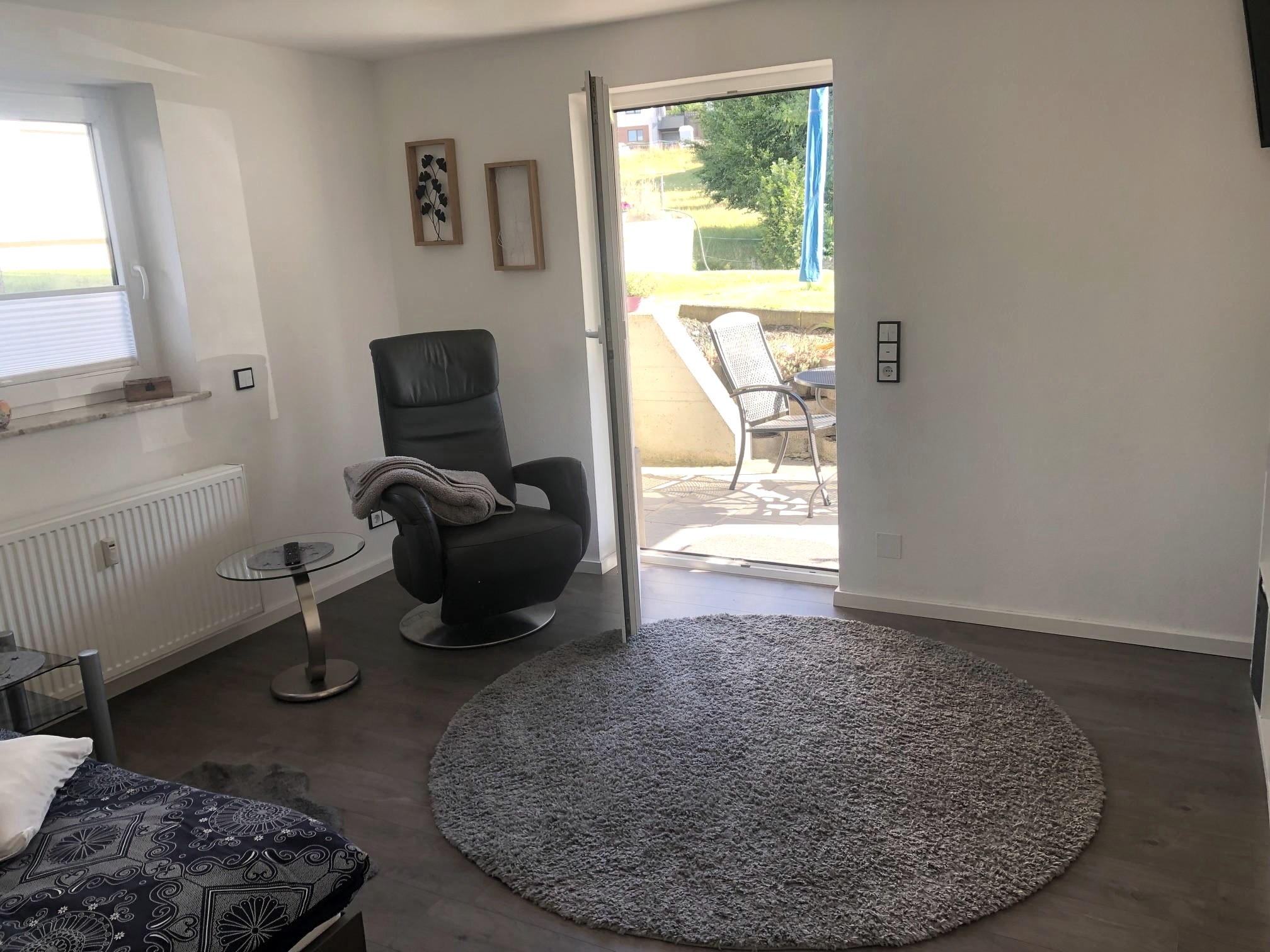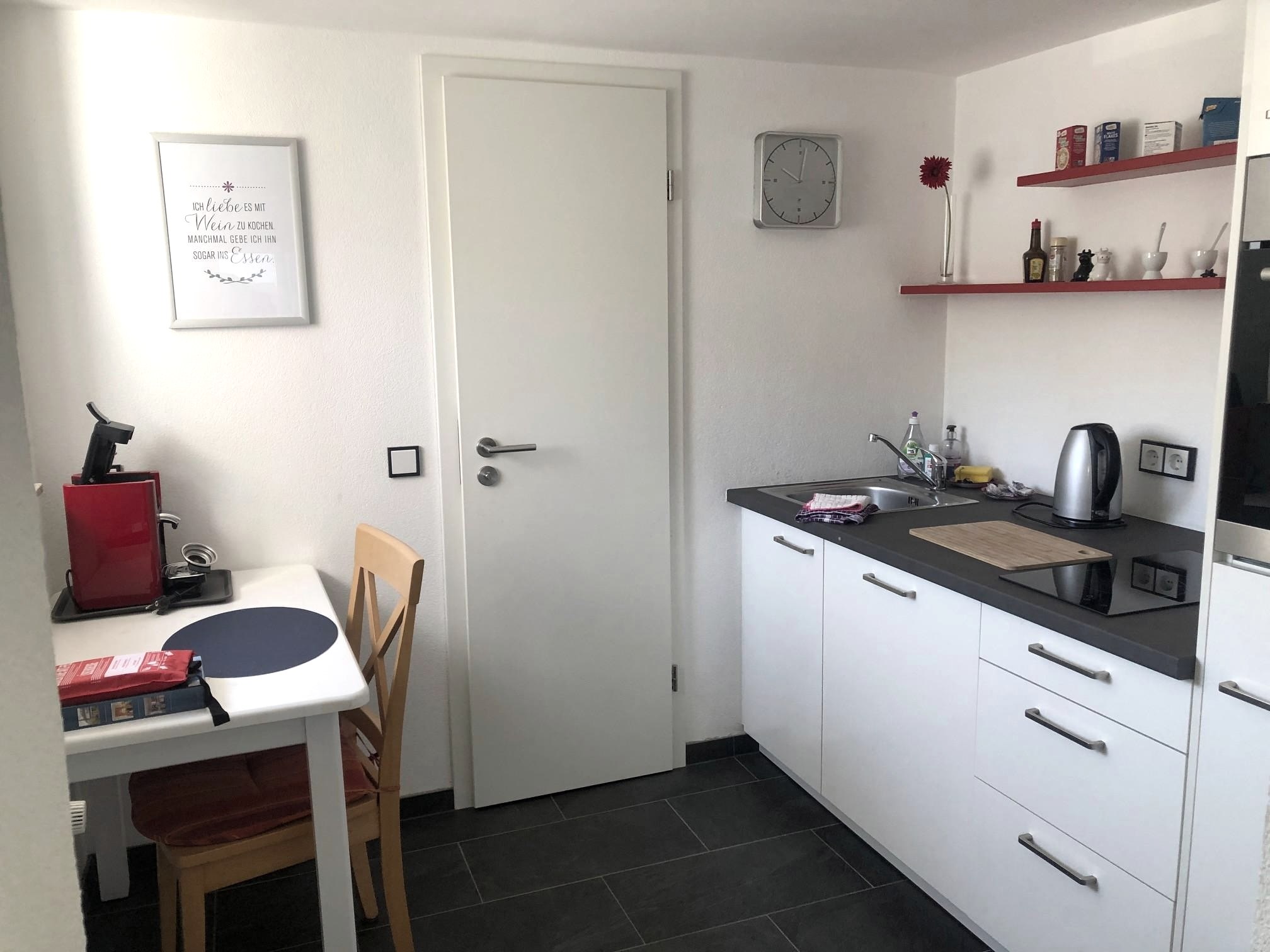 Modern eingerichtete Wohnung mit separatem Eingang, komplett eingerichteter Küche, Sat-TV, Bettwäsche und Handtücher inklusive, Gartenmitbenutzung, Fahrradunterstellplatz, PKW-Stellplatz